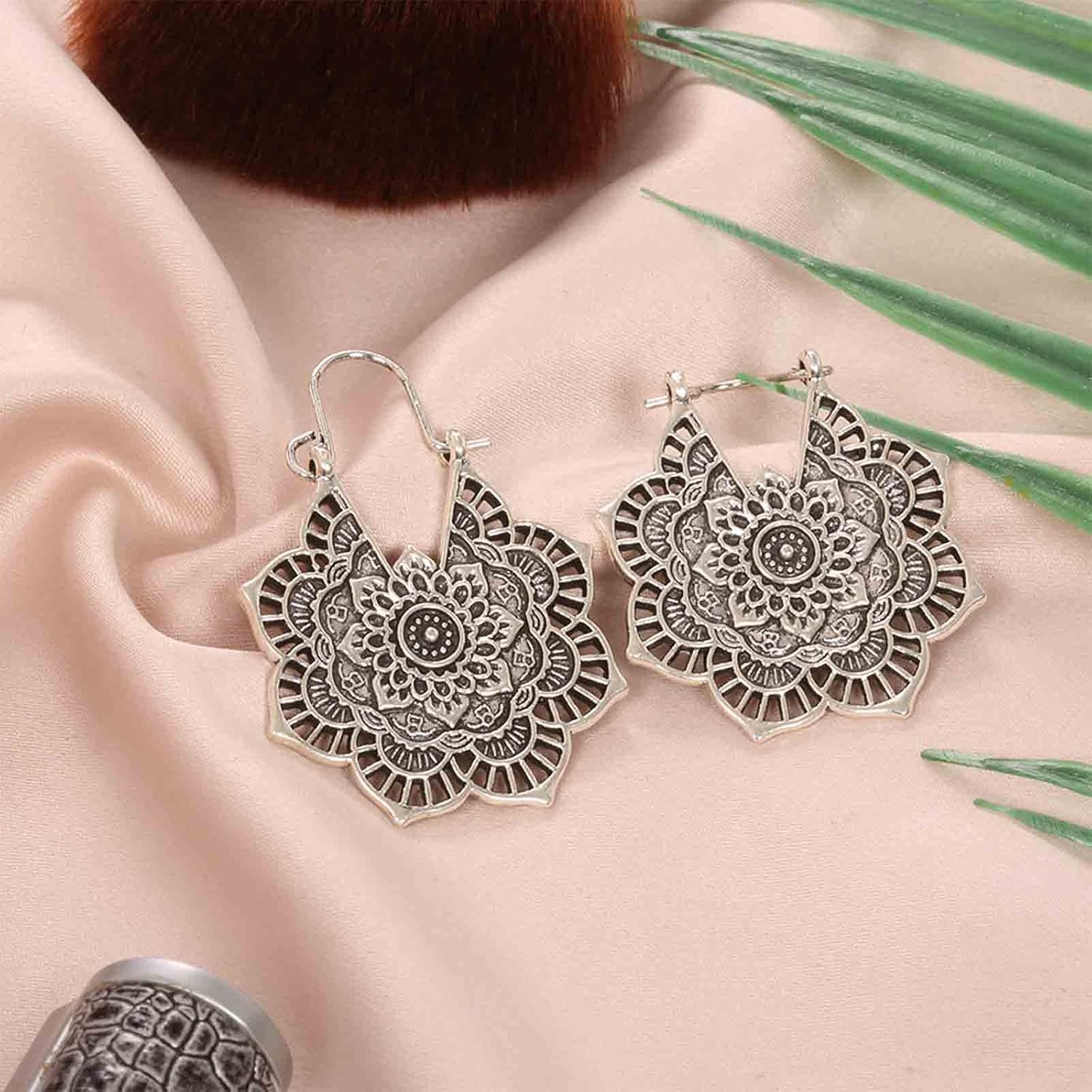 Boho Mandala Flower Earrings Gold Drop Dangle Earrings Tribal Earrings Vintage Ethnic Hoop Earrings Jewelry for Women and Girls