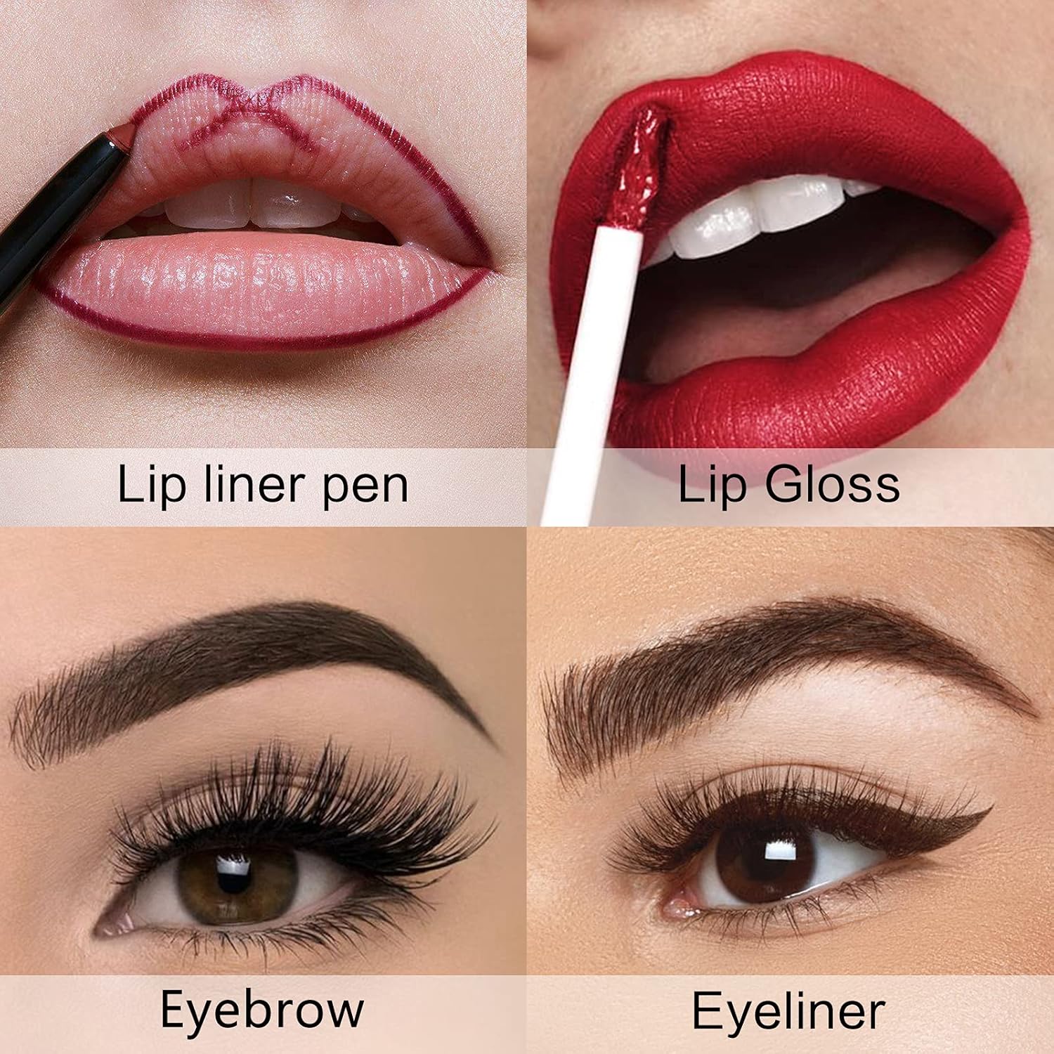 - This makeup bundle contains black & brown eyebrow pencil, 3* matte liquid lipstick, 3* lip liner, 1* eye liner pen, 1* eye primer and 15* pink cosmetic brushes. Also come with 1* 86 colorful big pallet, which has 80 colors eye shadow from soft earth tone down to vibrant tone that has matte shimmer and glitter finish. This rainbow plattet also got 2* highlighters, 2* contours, 2* blushers.