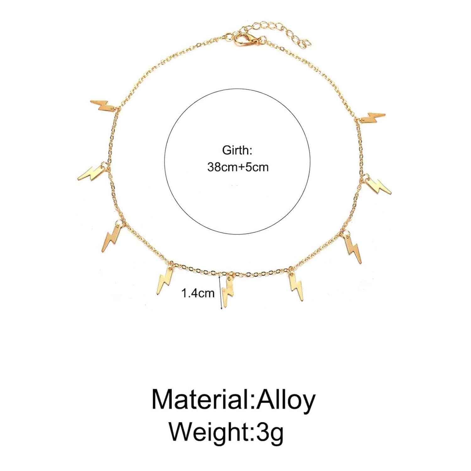Boho Lighting Bolt Choker Necklace Gold Dangle Thunder Necklace Minimalist Collar Chain Necklace Weather Necklace Jewelry for Women and Girls