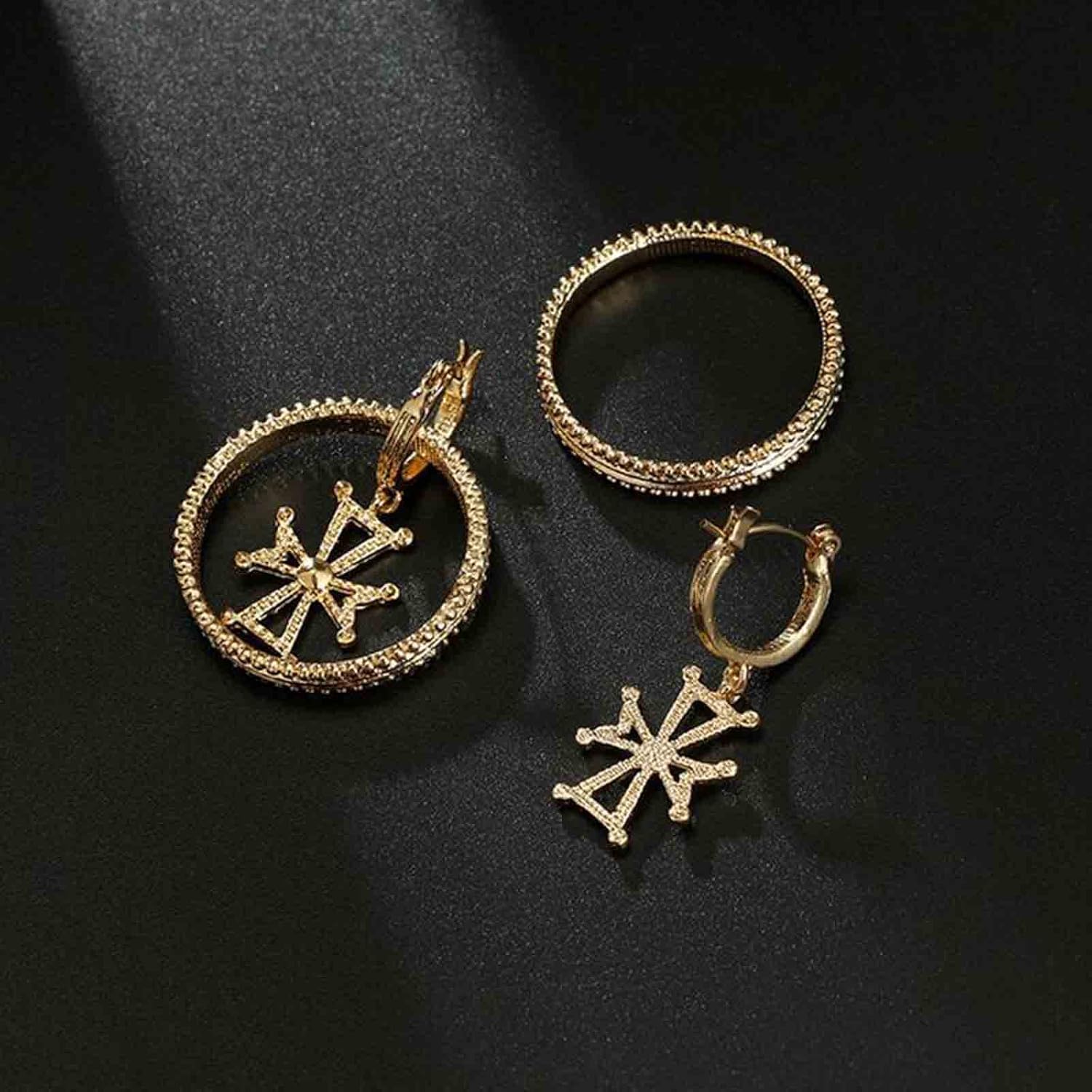 Punk Circle Cross Earrings Gold Circle Drop Dangle Earrings Brass Geometric Earrings Modern Chunky Drops Earrings Jewelry for Women and Girls Gifts
