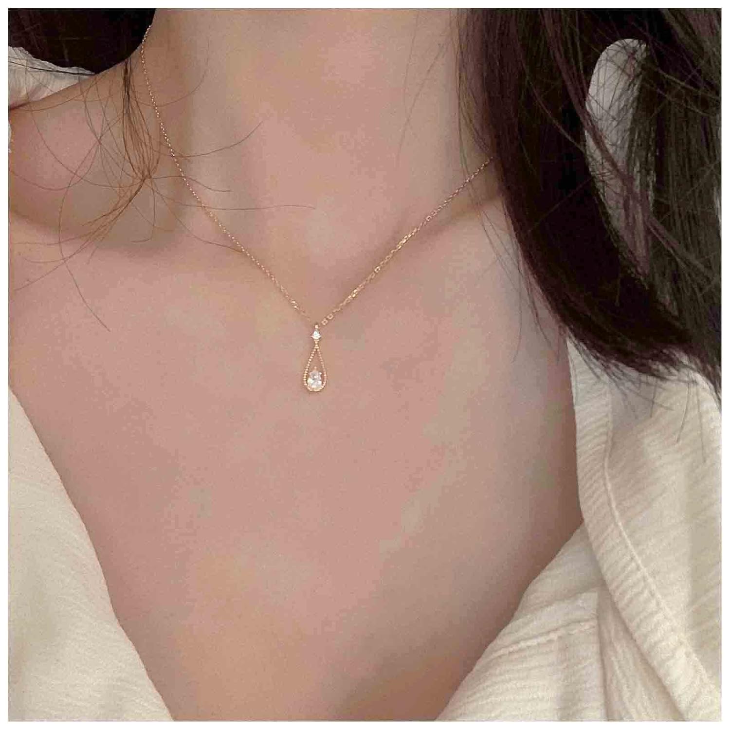 Vintage Tiny Teardrop Crystal Necklace Choker Gold Rhinestone Dot Pendant Necklace Chain Water Drop Choker Necklace Minimalism Necklace Chain Jewelry for Women and Girls