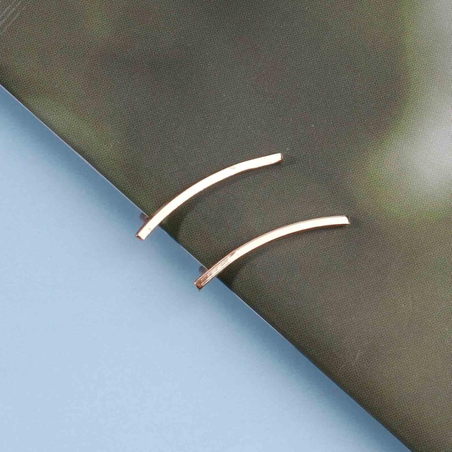 - Gold Curved Bar Earrings Studs with real images.Length around 0.7inch.2Pcs.