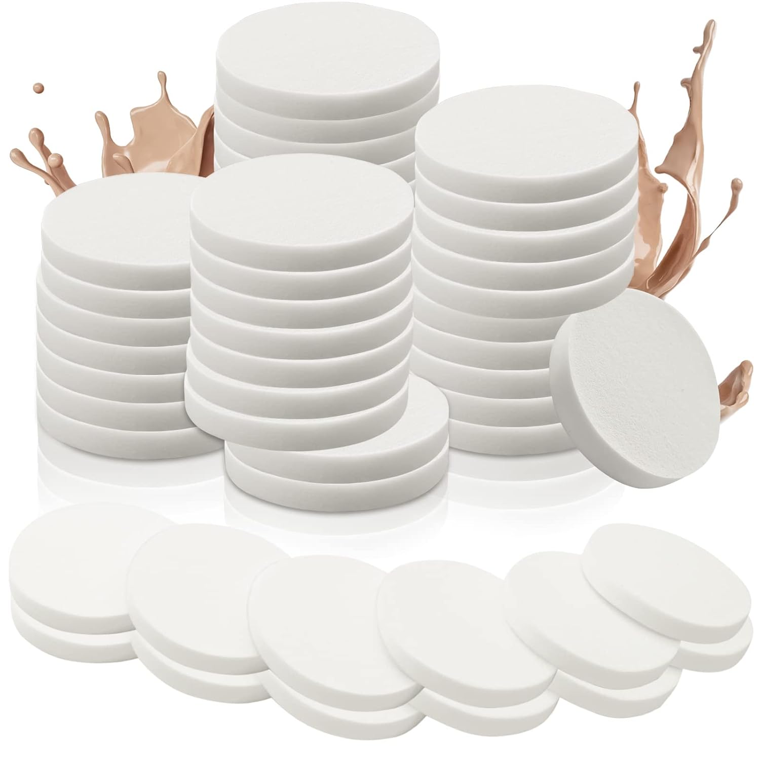 Vmiapxo 48 Pieces White Makeup Sponge, Cosmetic Sponge Round Foam Pad, Compact Facial Powder Puff, Beauty Makeup Foundation Powder Blender for All Skin Types Wet and Dry Dual Use