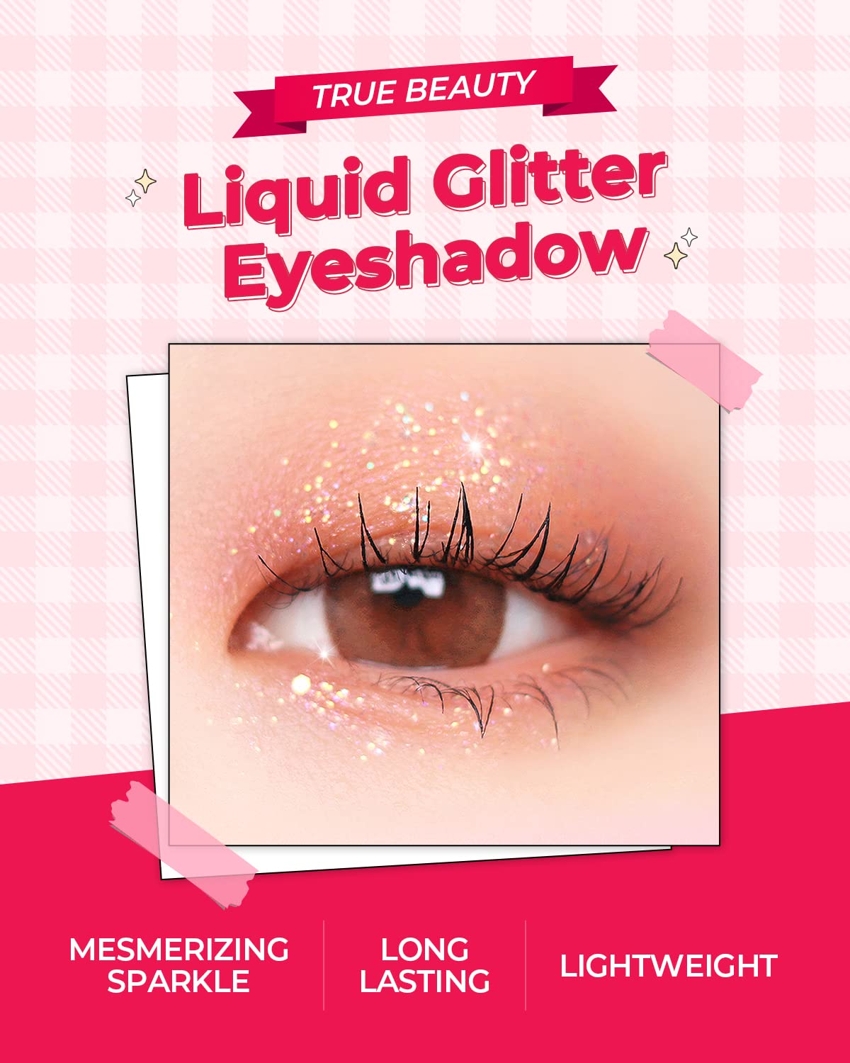 AMTS x True Beauty Makeup Edition - Some Love Makeup 3 Set (7colors Eyeshadows + Liquid Glitter + Lip stain tint) | Matte Shimmer Pearls Shades, Highly Pigmented, Pink Gold Set