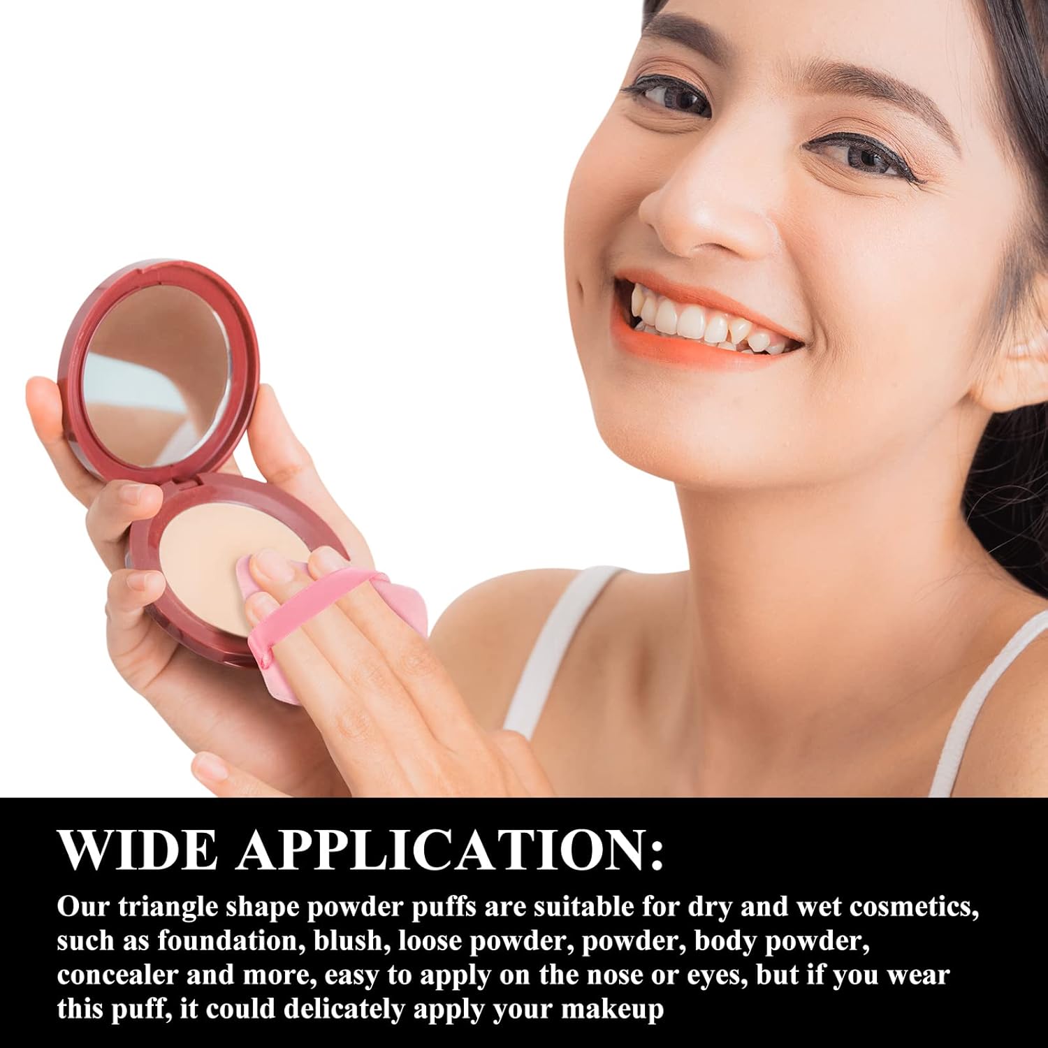 - Diverse usages: our triangle shape powder puffs are suitable for dry and wet cosmetics, such as foundation, blush, loose powder, powder, body powder, concealer and more, easy to apply on the nose or eyes, but if you wear this puff, it could delicately apply your makeup
