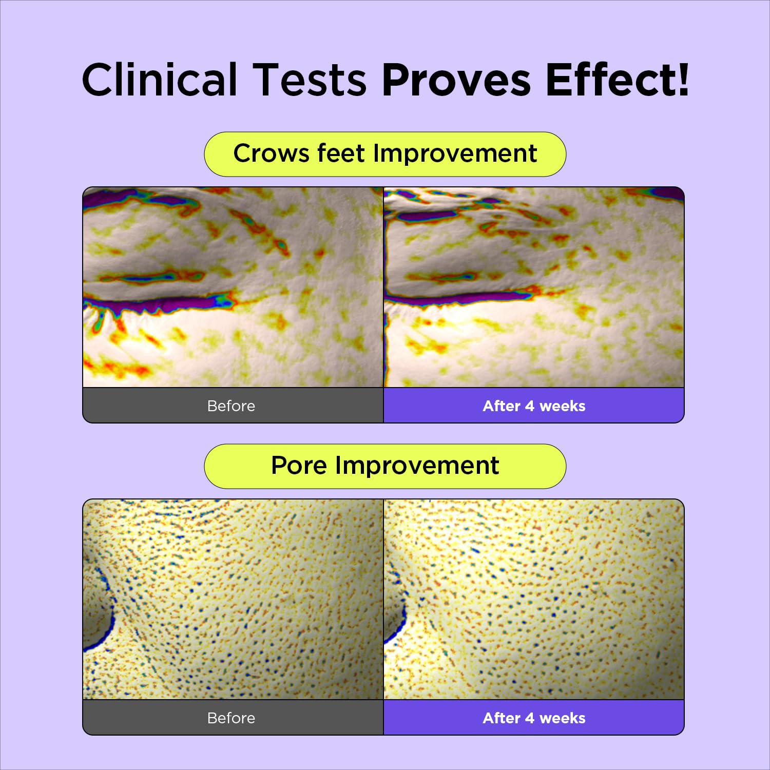 - 📊 NOTICEABLE RESULTS: ✅Immediate effect on quantity, size, volume, and depth of the skin pore with one-time use ✅ Improvement on skin moisturizing, eye wrinkle, skin elasticity, face lift (cheek), skin density and skin texture (roughness) with 4 weeks use 💛FLUORESCENT YELLOW COLOR IS THE NATURAL COLOR OF RETINAL 💛