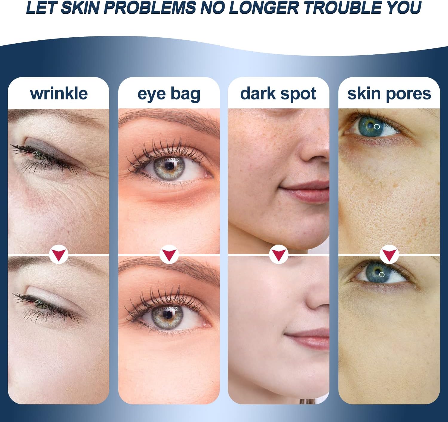 - HIGH-FREQUENCY Vibration Massager --- Has 3 adjustable energy levels up to 7300(±10)rpm vibration, this skin tightening machine can firm your skin by gently working on your facial muscles in the cheeks, eyes and forehead.