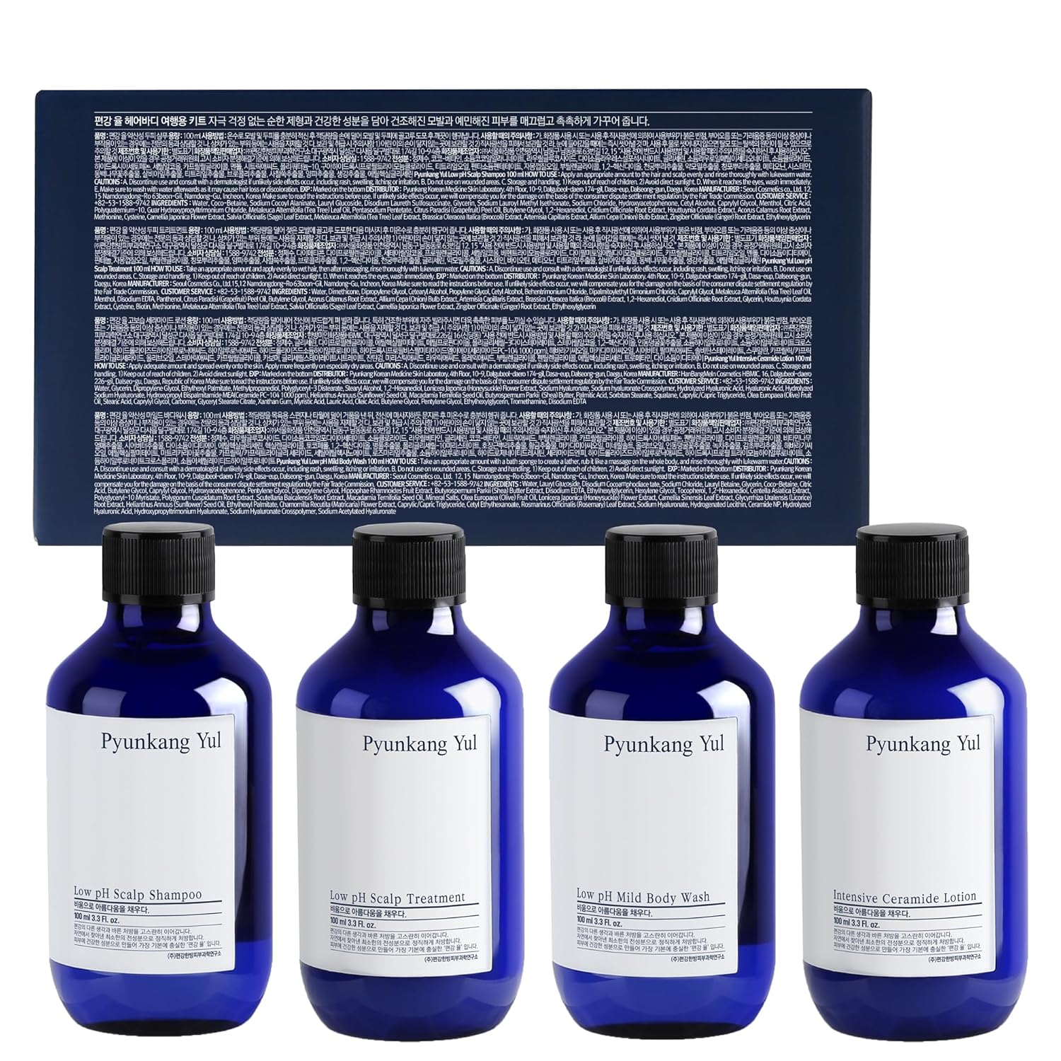 PYUNKANG YUL Hair&Body Travel Kit | Shampoo, Conditioner, Body Wash, Lotion, Spa Kit, 4 items | Low pH, Moisturizing, Soothing, Refreshing, Fragrance Free | Korean Skin Care | 3.38 Fl.Oz. x 4ea