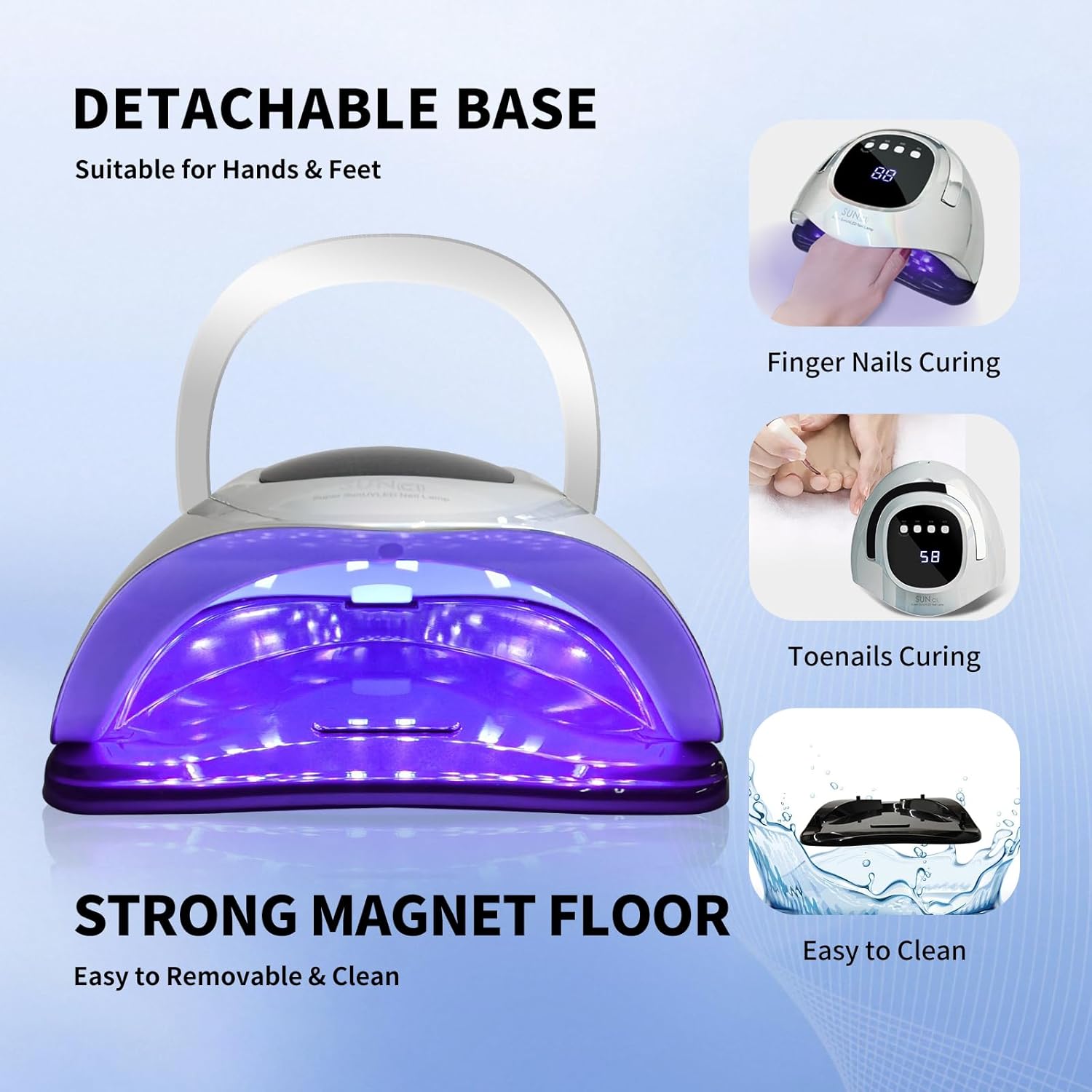- ★【Large Space for Manicure and Pedicure】Gel UV LED Nail lamp has the classic color of black and white. Big enough space for curing two hands at the same time. Detachable base is more convenient for toenail gel curing and cleaning. The design of the curved lines increases the internal space and easily cure hands or feet.