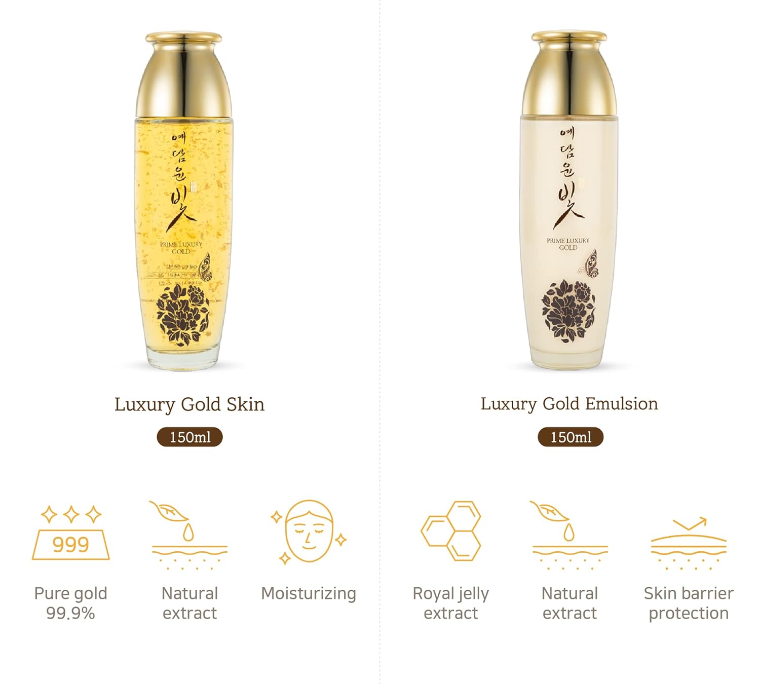 YEDAM YUN BIT Prime Luxury Gold Women Skin Care Set With Skin, Emulsion, Cream, Serum, Wrinkle Care Nourishing And Moisturizing, Calming Korea Cosmetics