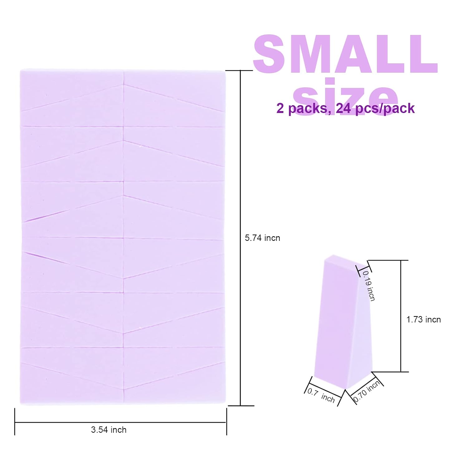 - Makeup Sponges Wedges: 2 colors, 48 pieces, the small, wedge shape makeup sponge makes it easy to apply product to those hard to reach areas such as underneath the eyes. Each pack has 24 precut wedges so you can easily pull them apart to provide each client with a hygienic makeup experience without sacrificing quality or performance.