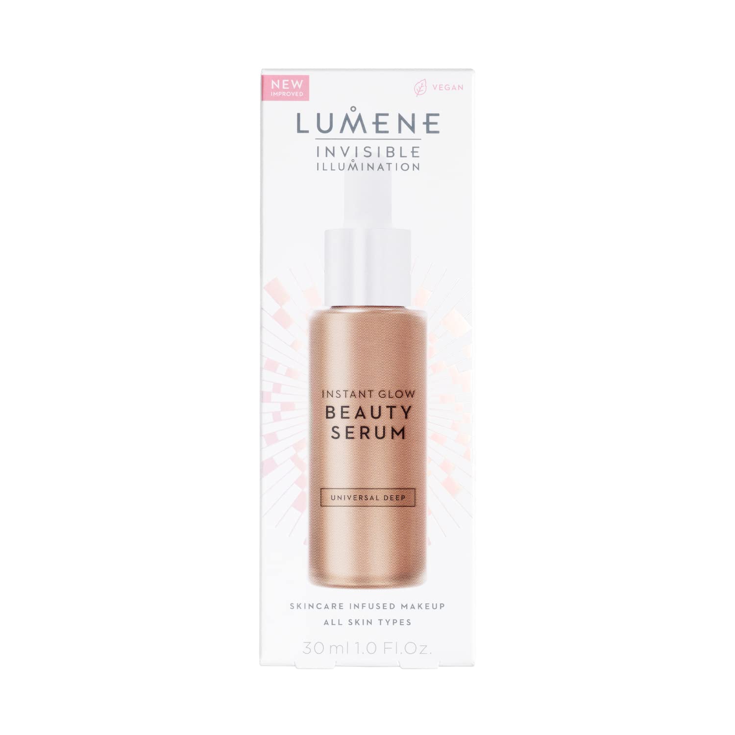 Lumene Invisible Illumination Instant Beauty Glow Serum - Sheer-Coverage Face Makeup + Brightening Serum - Infused with Nordic Algae and Vitamin E for Instant Radiance - Universal Deep (30ml)