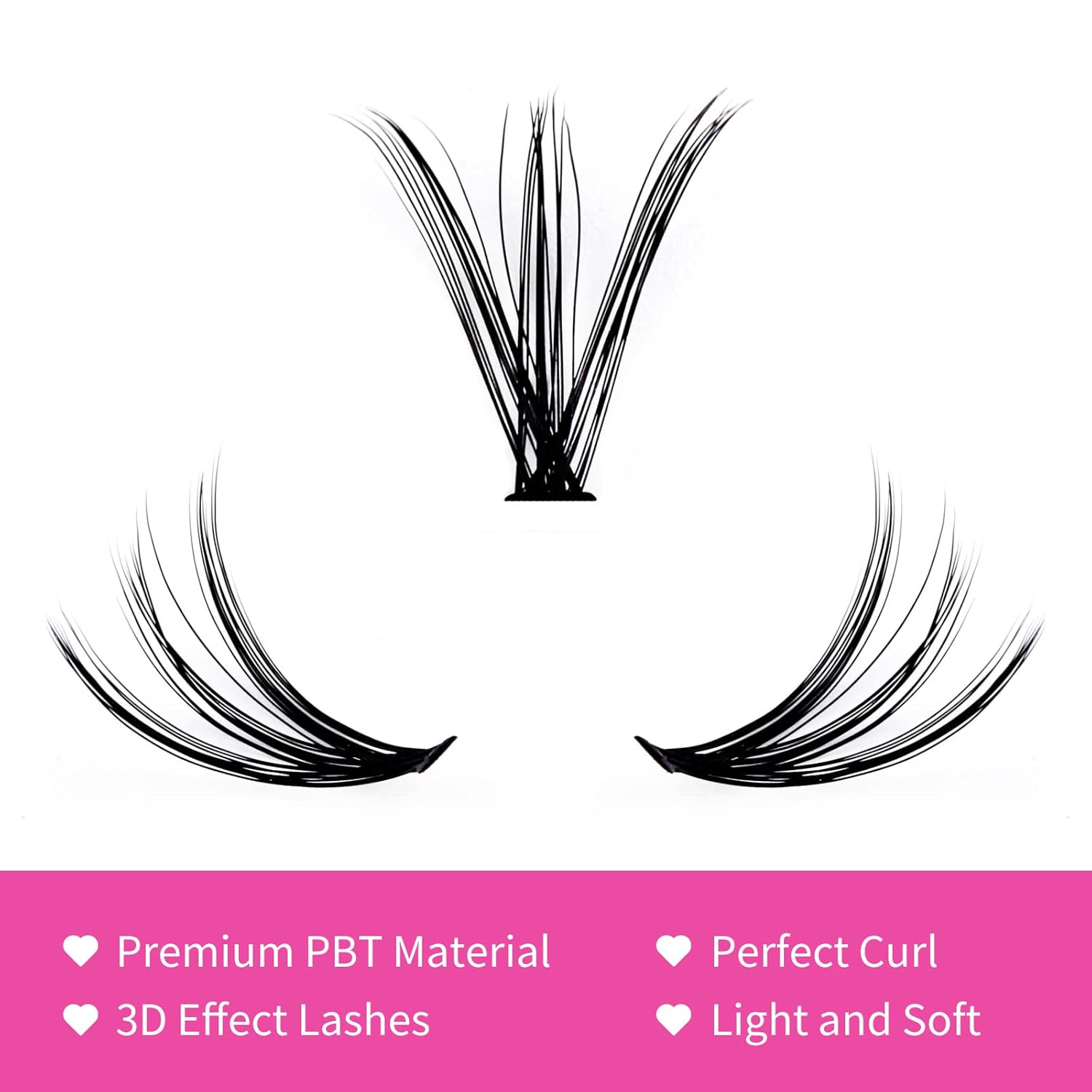 - 【DIY Individual Clusters at Home】:You can apply cluster lashes at home by yourself.Easy to put lashes on, gorgeous results, and lash clusters are not easily fall apart.Cluters take less time to complete each eye.Now save so much money and time.Beginners can also use this cluster lashes extension perfectly, enjoy it!
