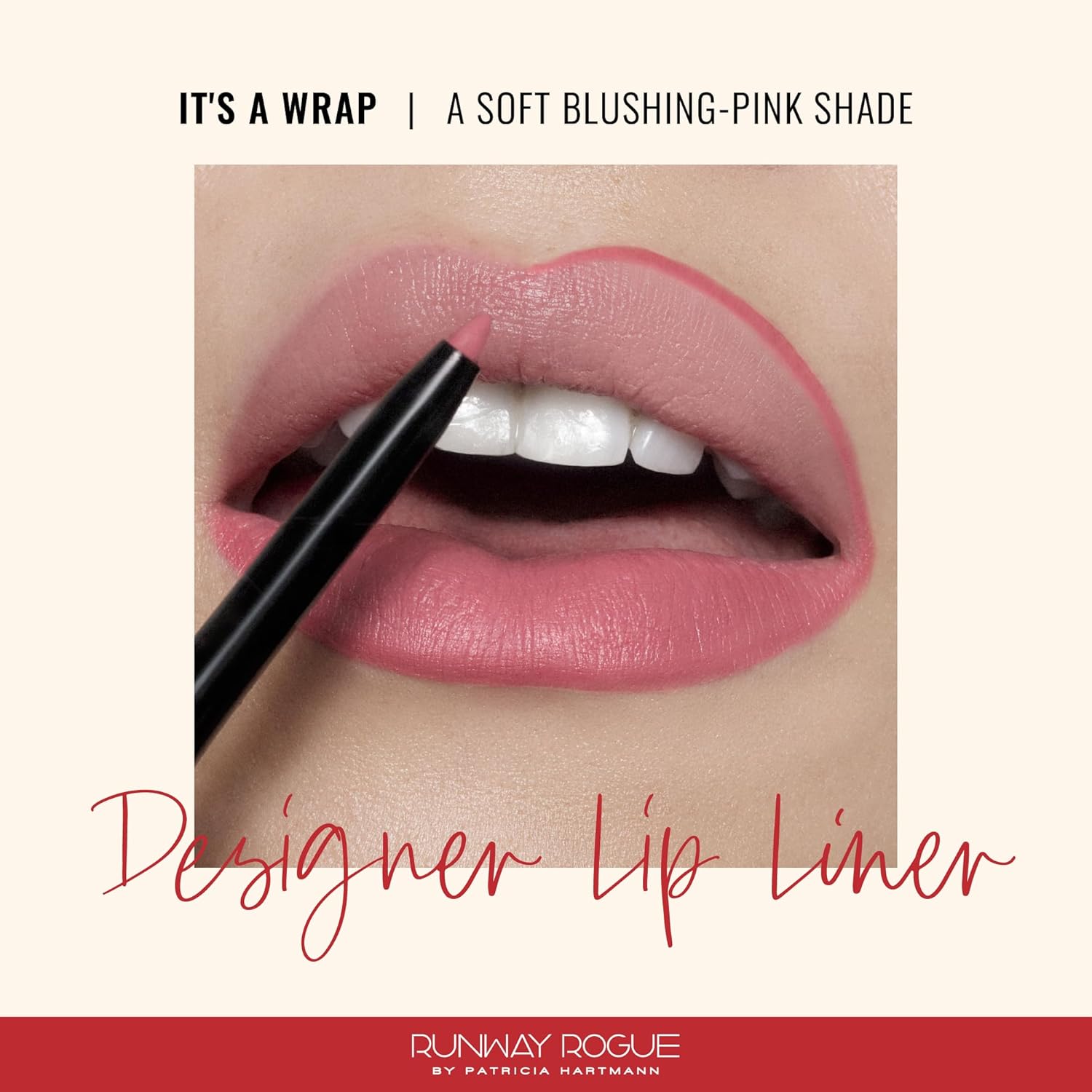 - MATTE LIP LINER PENCIL: Designer Lip Liner is a creamy matte lip pencil designed to help contour and enhance your natural lip shape, keep your lipstick in place, and prevent lipstick from feathering and bleeding while also improving its long wear and lip color. ‘It’s a Wrap’ is a soft blushing-pink lip liner shade.