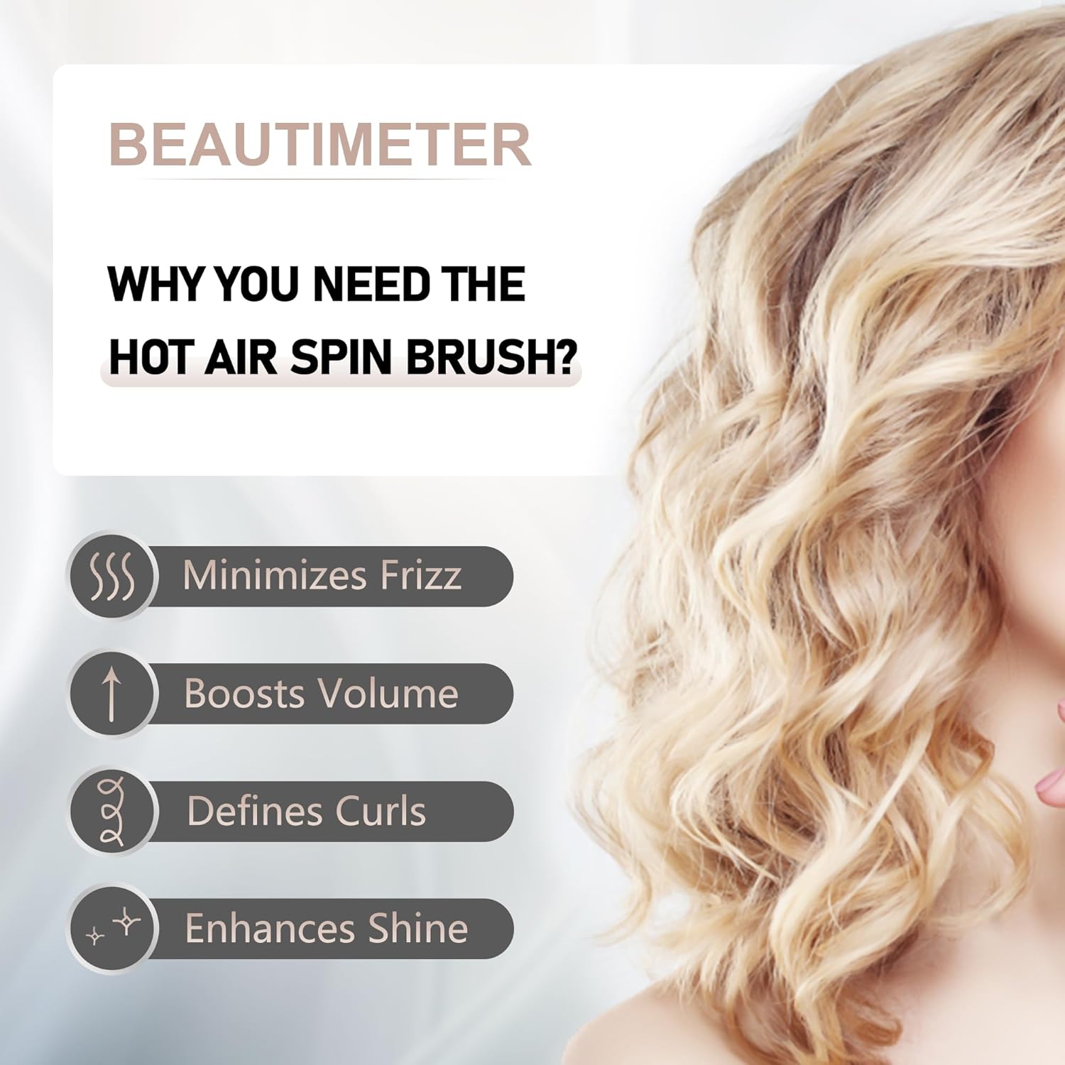Beautimeter Hair Dryer Brush, Spinning Blow Dryer Brush for Smooth Blowouts, 3-in-1 Rotating Hot Air Brush Styler for Various Hair Styles