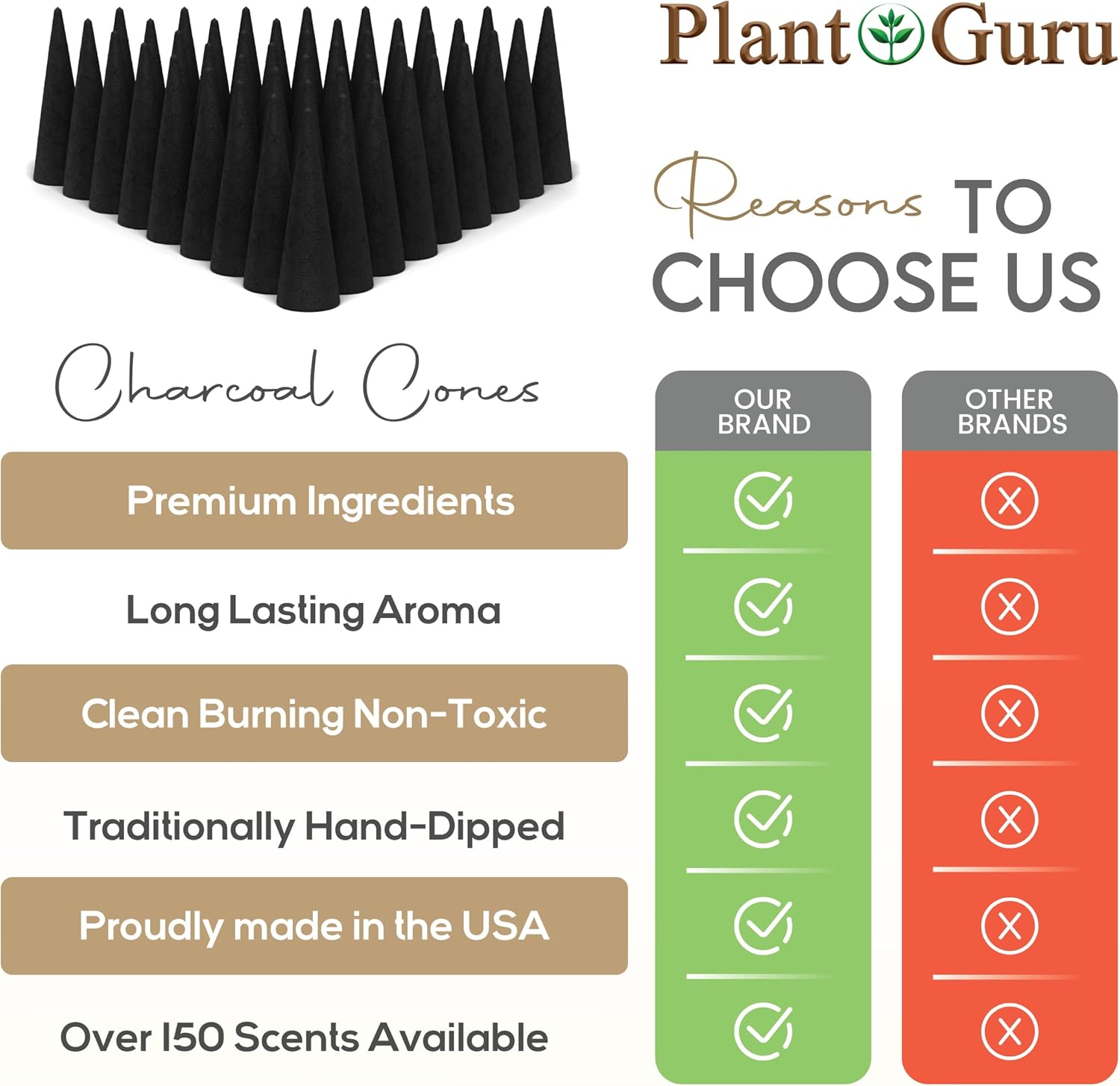 - ✅ MADE IN THE USA - 60 Cones Per Pack - Hand dipped daily using premium grade fragrance Oils. Each cone is 2'' inches long and made of high-quality charcoal. Hand dipped for 48 hours. Burns time is approximately 25 to 30 minutes.
