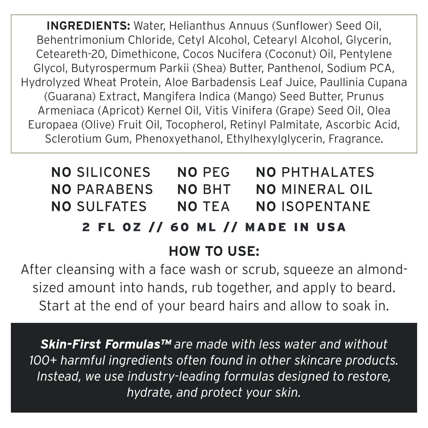 - NATURAL CONDITIONING: Formulated to nourish and condition your facial hair with shea butter, hydrolyzed wheat protein, and mango seed butter. We've added these ingredients because they are known to help restore elasticity to beard hair, meaning less breakage and split ends