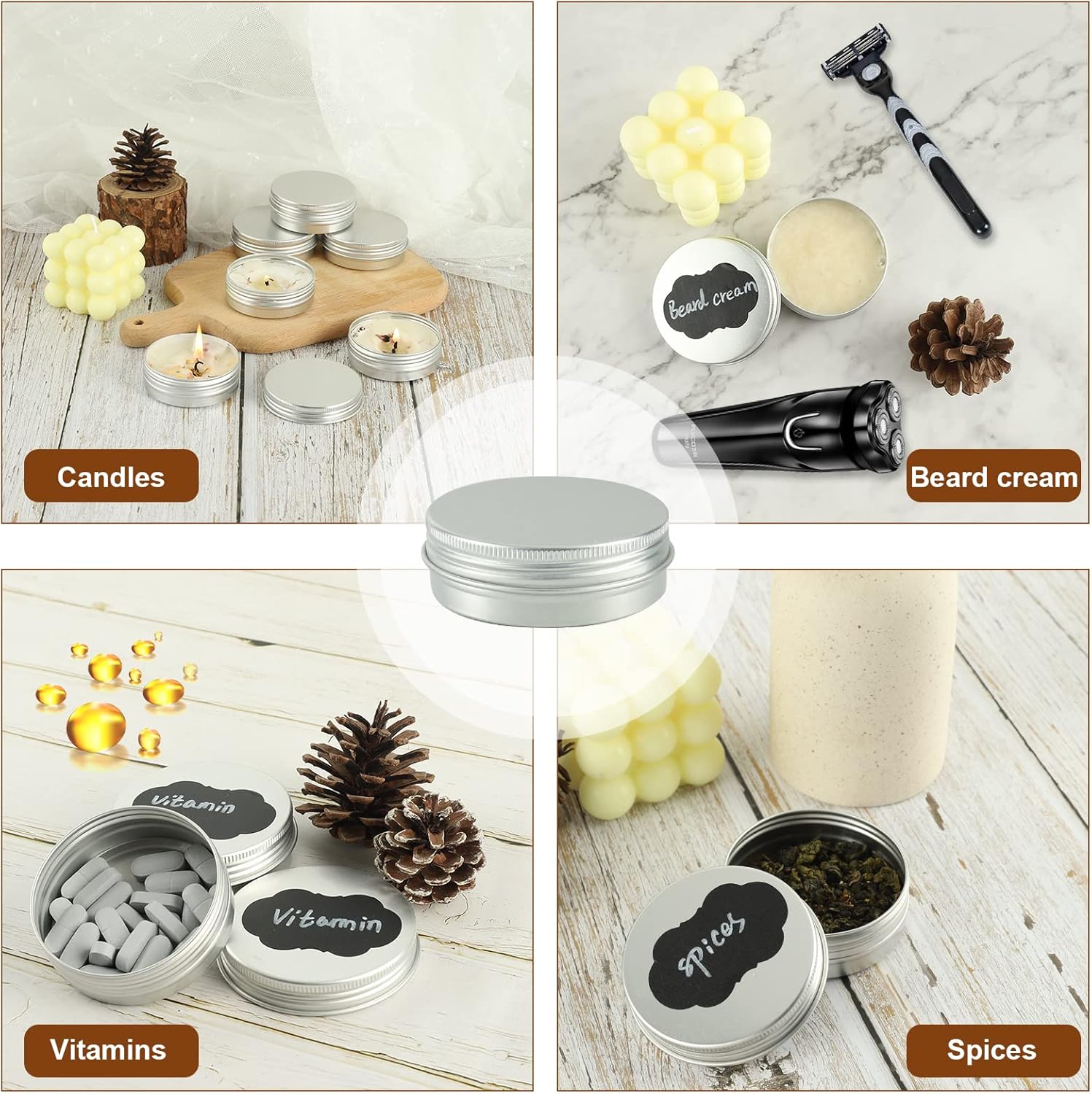 - 【Wide Application】- These empty aluminum containers are perfect be widely used to make candles or store DIY ointments, food storage, beard balms,DIY balm, cosmetic packaging, candy storage, and so on.