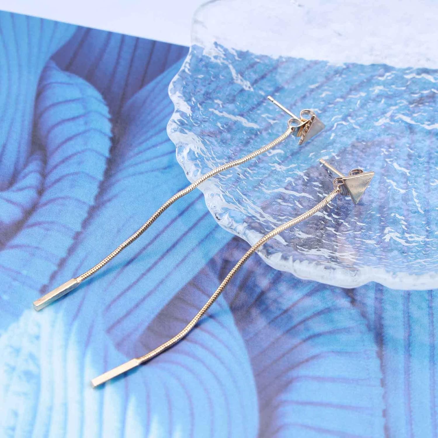 - Gold Triangle Earrings keep color and sturdy,simple yet classic.Own your timeless notion of beauty.