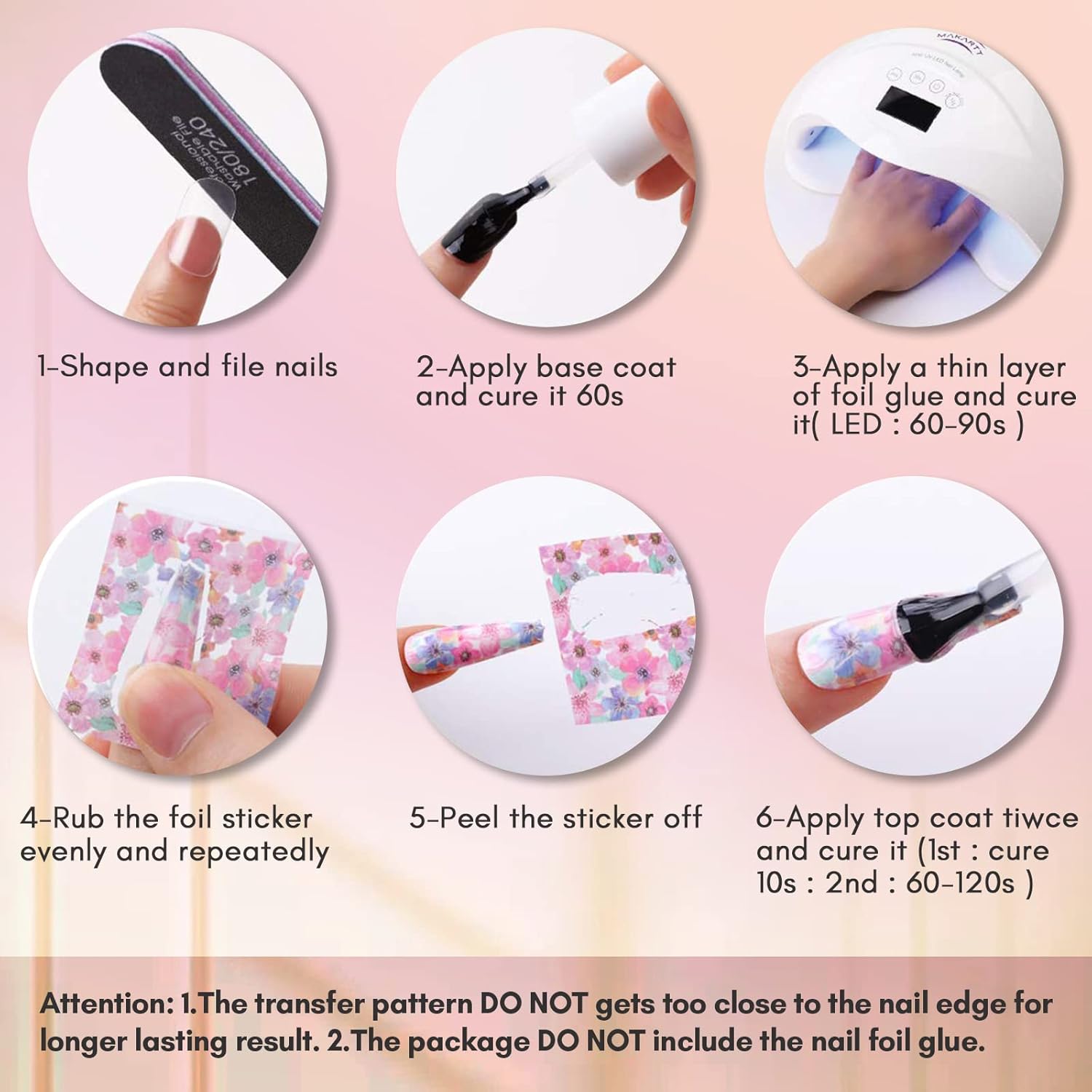 - Nail Foil Glue Needed(not included): These transfer foil sheets are made to be used with nail foil glue,it does not come with foil glue.You need to buy foil glue separately.Recommended for use with Makartt nail foil glue gel.