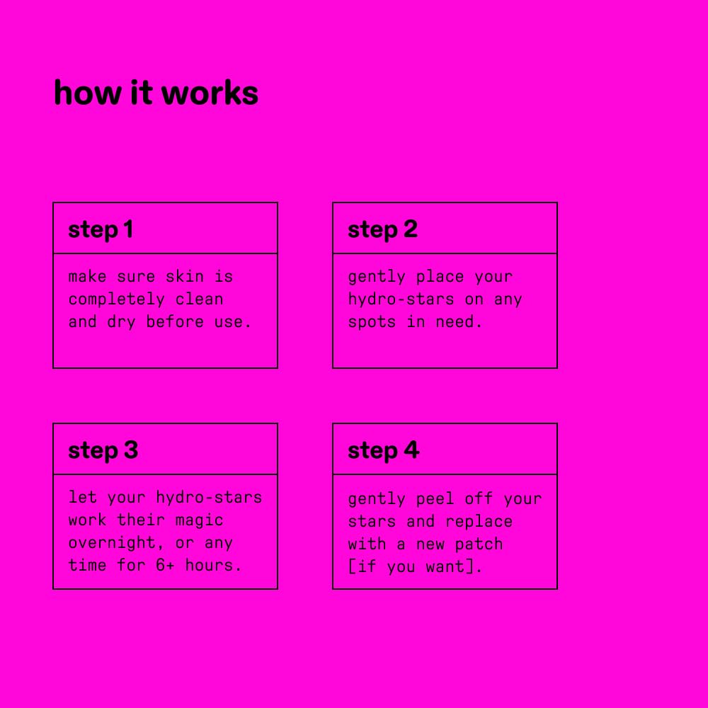 - FOR EVERYONE, ALWAYS: Hydro-Stars are vegan, cruelty free, dermatologist tested, gentle, and safe for every skin type (even sensitive).