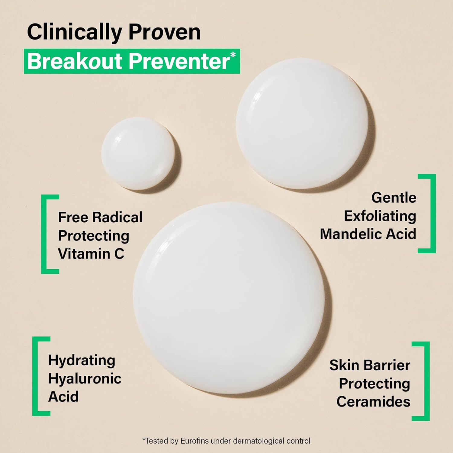 - All-Day Hydration + Skin Barrier Protection: Powered by a complex of Mandelic Acid, an effective but gentle exfoliating acid, along with Niacinamide, Hyaluronic Acid and Ceramides to deeply hydrate, + Vitamins E + C to help shield the skin from environmental aggressors