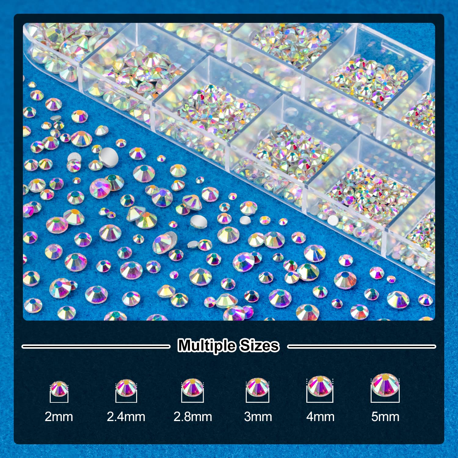- 💎COMBINATION&MULTIPLE SIZES: This set provides 1 box of Flat-back glass round AB rhinestones with 6 sizes: 2mm、2.4mm、2.8mm、3mm、4mm、5mm; 1 box of Flat-back white&beige half round pearls with 6 sizes: 2mm, 2.5mm, 3mm, 4mm, 5mm, 6mm. Great size range and combination with rhinestones and pearls for your nail art decoration!