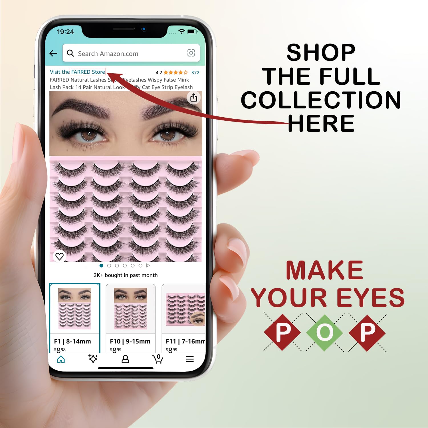 FARRED Natural Lashes Short Eyelashes Wispy False Mink Lash Pack 14 Pair Natural Look Fluffy Doll Eyelash Small Fake Strip Lashes Full Pestañas Sets for MUA and Beginners Daily Makeup (F3 | 8-16mm)