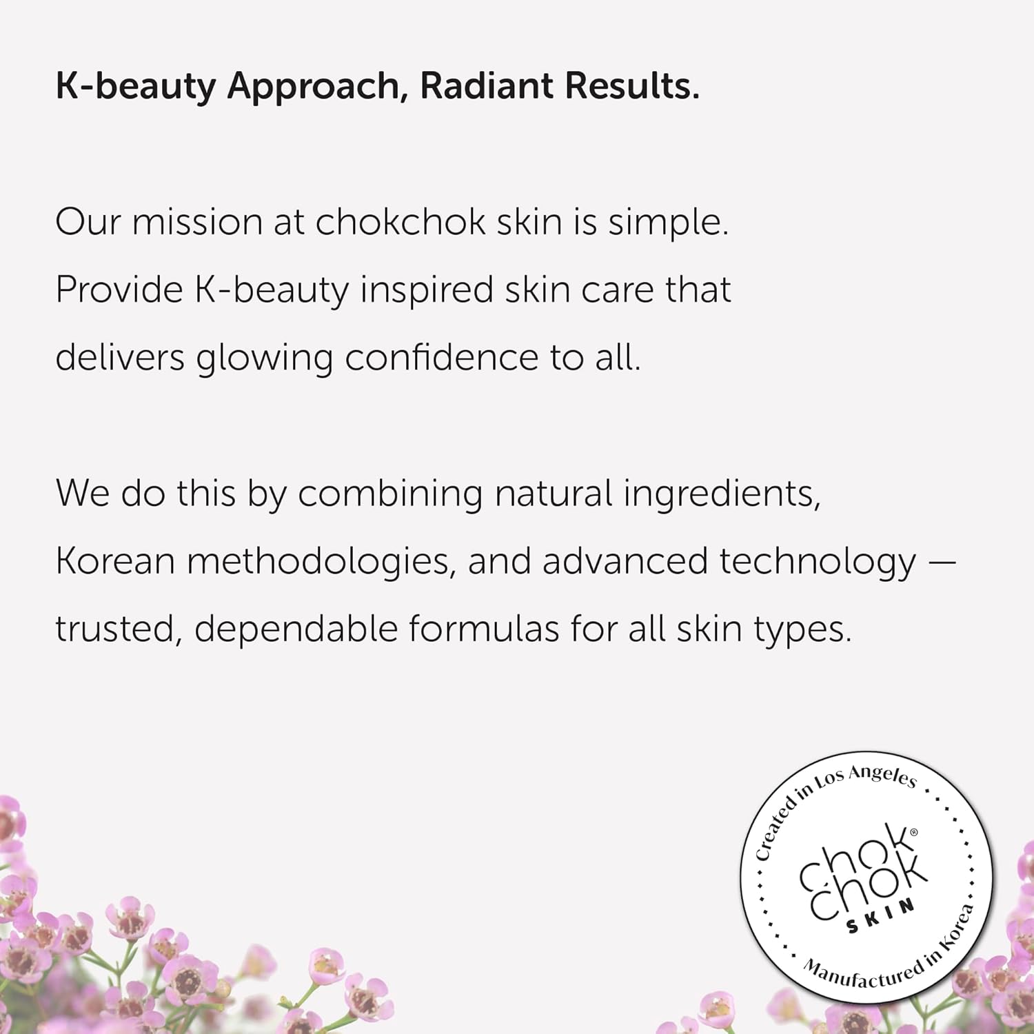 - FROM CHOKCHOK SKIN: Our core principles are simple: We only create products we use ourselves, we always provide full transparency on our ingredients and the benefits they offer, and we formulate for results and noticeably improved skin for everyone