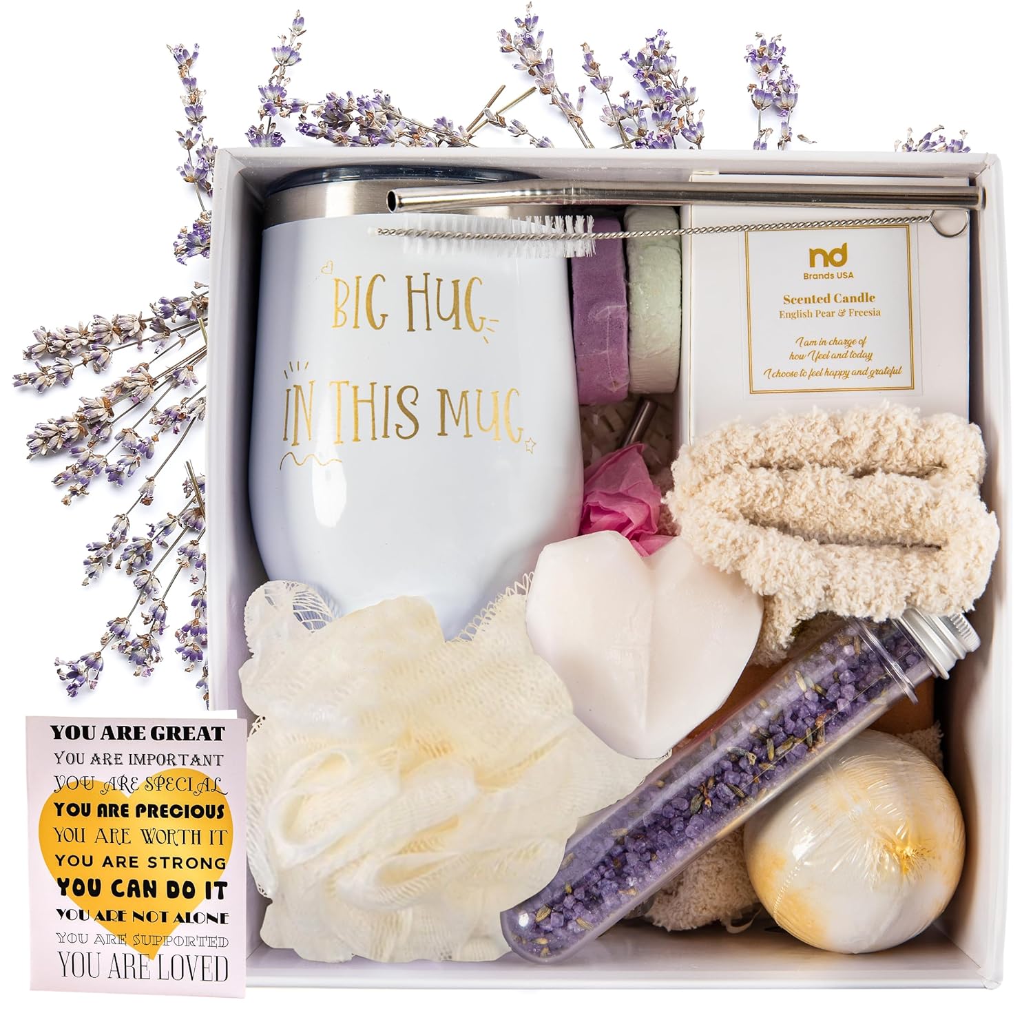 - Unwrap happiness and elevate spirit, mind and body - this luxury box of love, care and a big hug is your ultimate choice for leaving a lasting impression and brightening any day. It's elegant design, presentation and high-quality materials make it a standout self care Spa gift set for anyone special in your life.