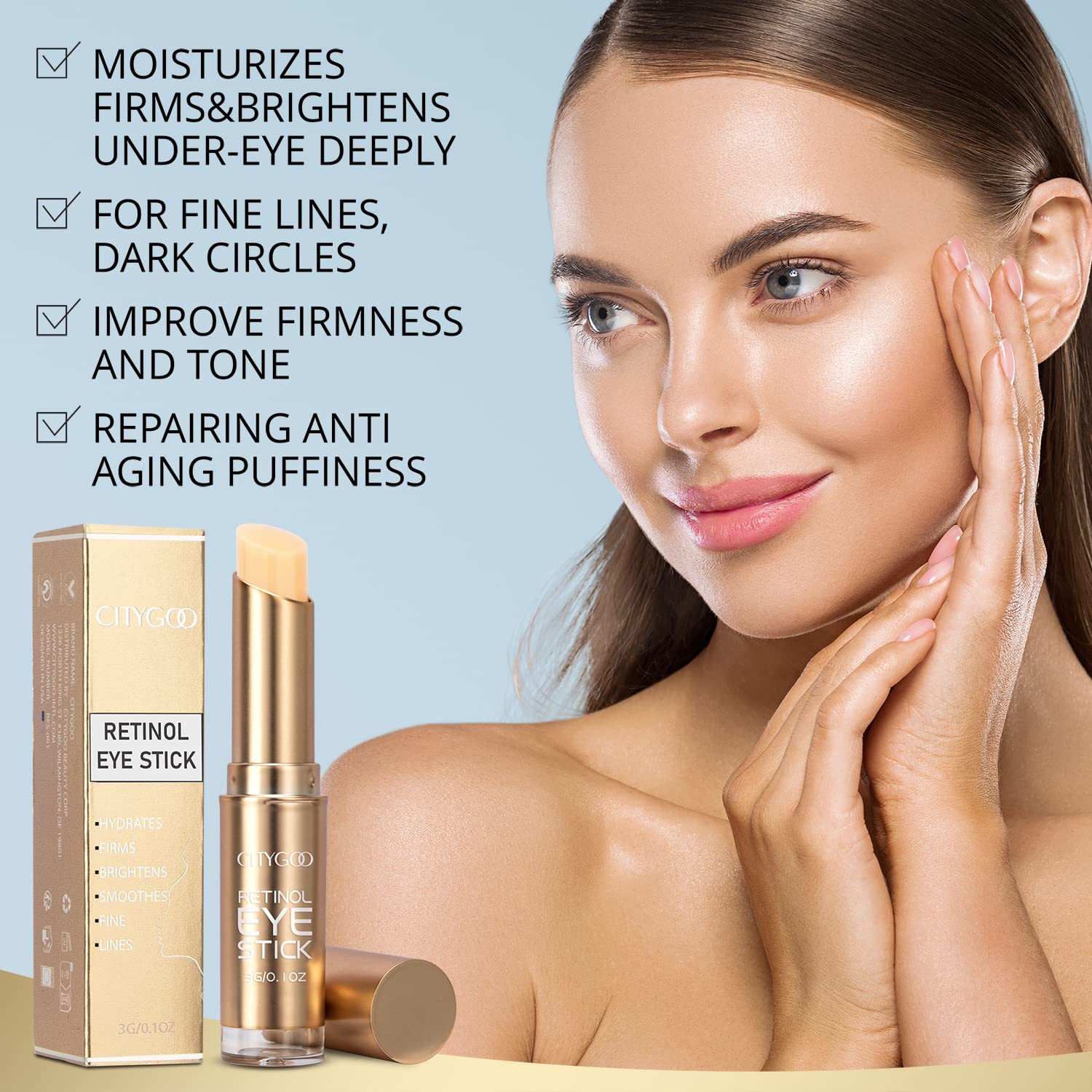 - DEPUFFS EYE CONTOUR AREA: The Retinol eye stick helps for puffiness and weariness around the eyes while providing an instant moisture boost. It hydrates and moisturises the eye contour areas.