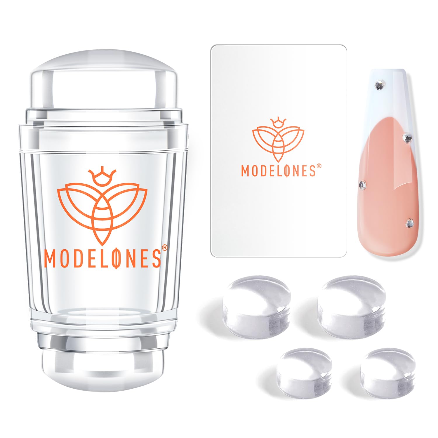 - French Nail Stamper: Create stylish and funny nail art with Modelones french nail stamper kit; it contains 1 jelly stamper, 1 scraper and 4 replacement heads; the stamper is clear and easy to use, picking up patterns quickly and accurately; suitable for nail professionals and beginners; you can use it as a nail stamp, a french manicure kit, or a nail french tip tool