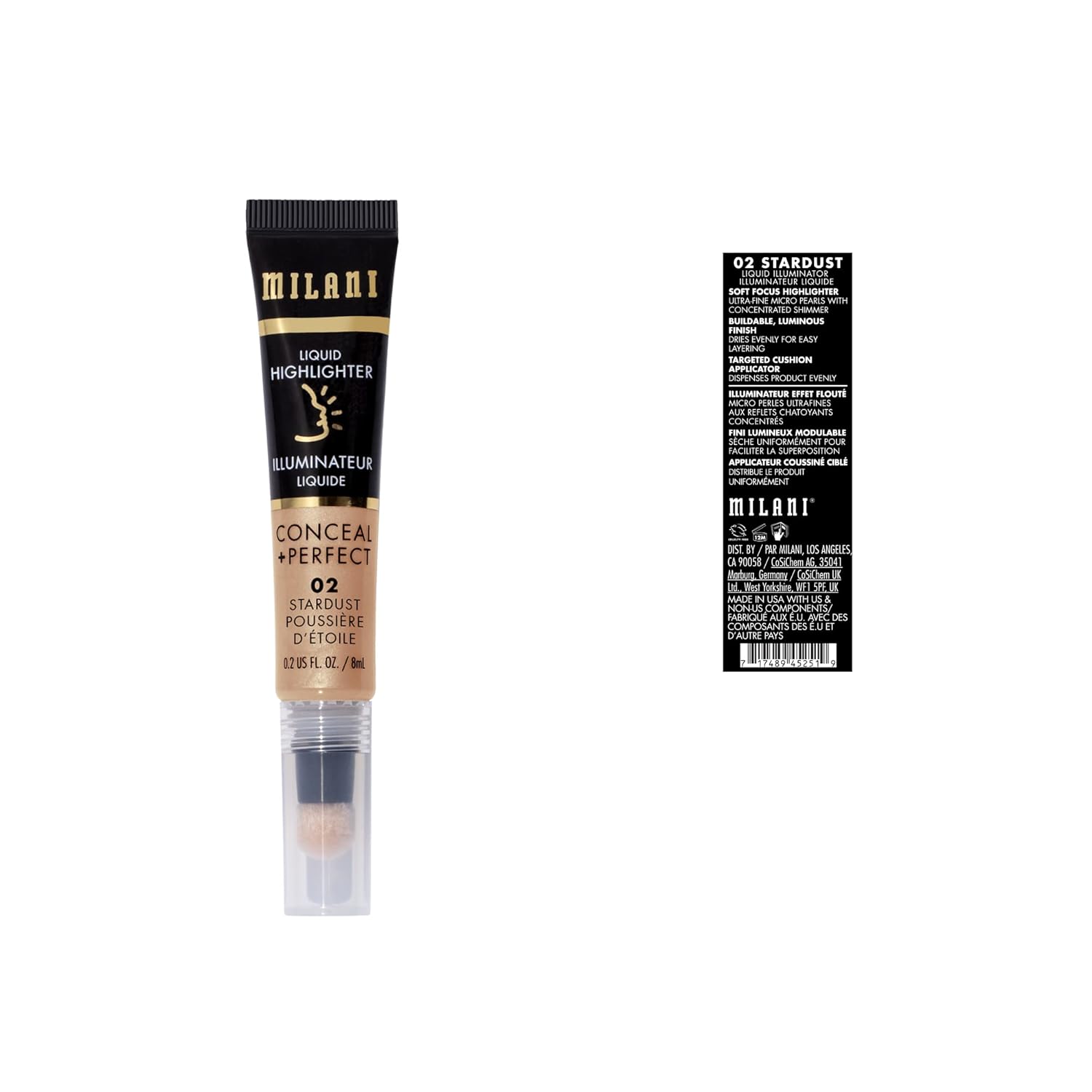 Milani Conceal + Perfect Liquid Highlighter for Added Glow, Face Lift Collection- Stardust