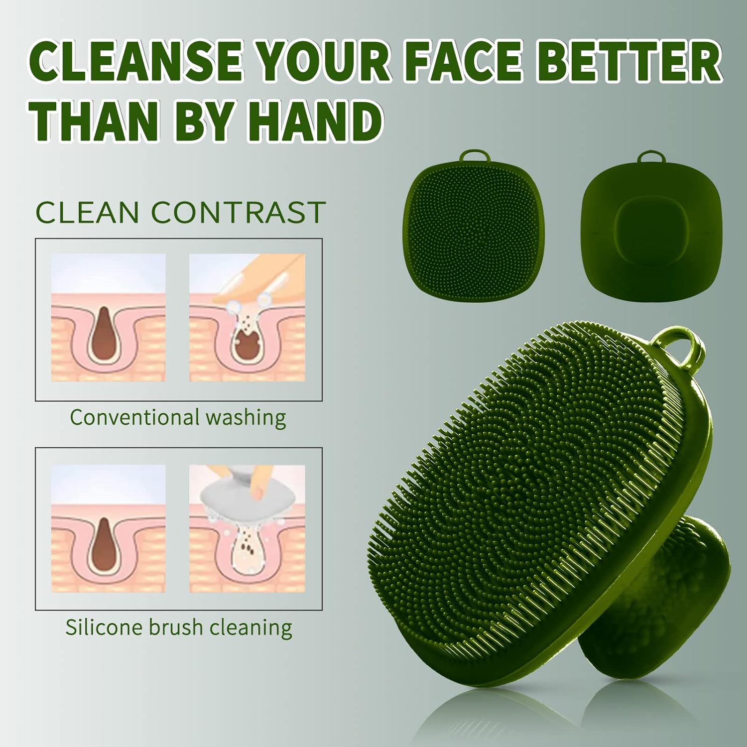 - [Food Grade Silicone Bristles] The bristles of the Silicone Face Scrubber are made of food-grade silicone, which is soft and smooth. Using our facial cleaner brush massage the face to clean the pores and enhance the absorption of skin care products.