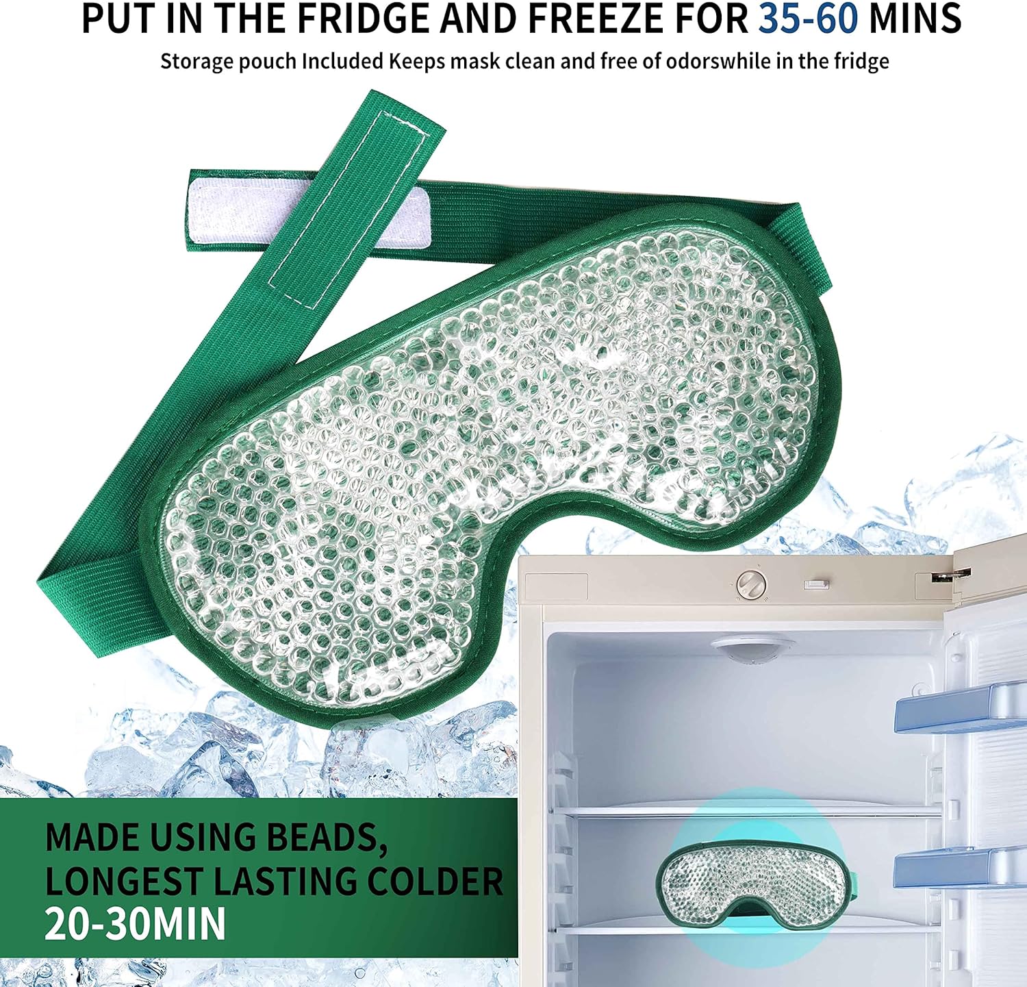 - HOW TO USE: Put it in the refrigerator and freeze for 35-60 minutes.(Control time according to personal preference); No time limit on the refrigerator fresh-keeping layer. The ice eye mask comes with a resealable bag that helps for healthful storage and prolong the product lifetime or isolate the fridge odor