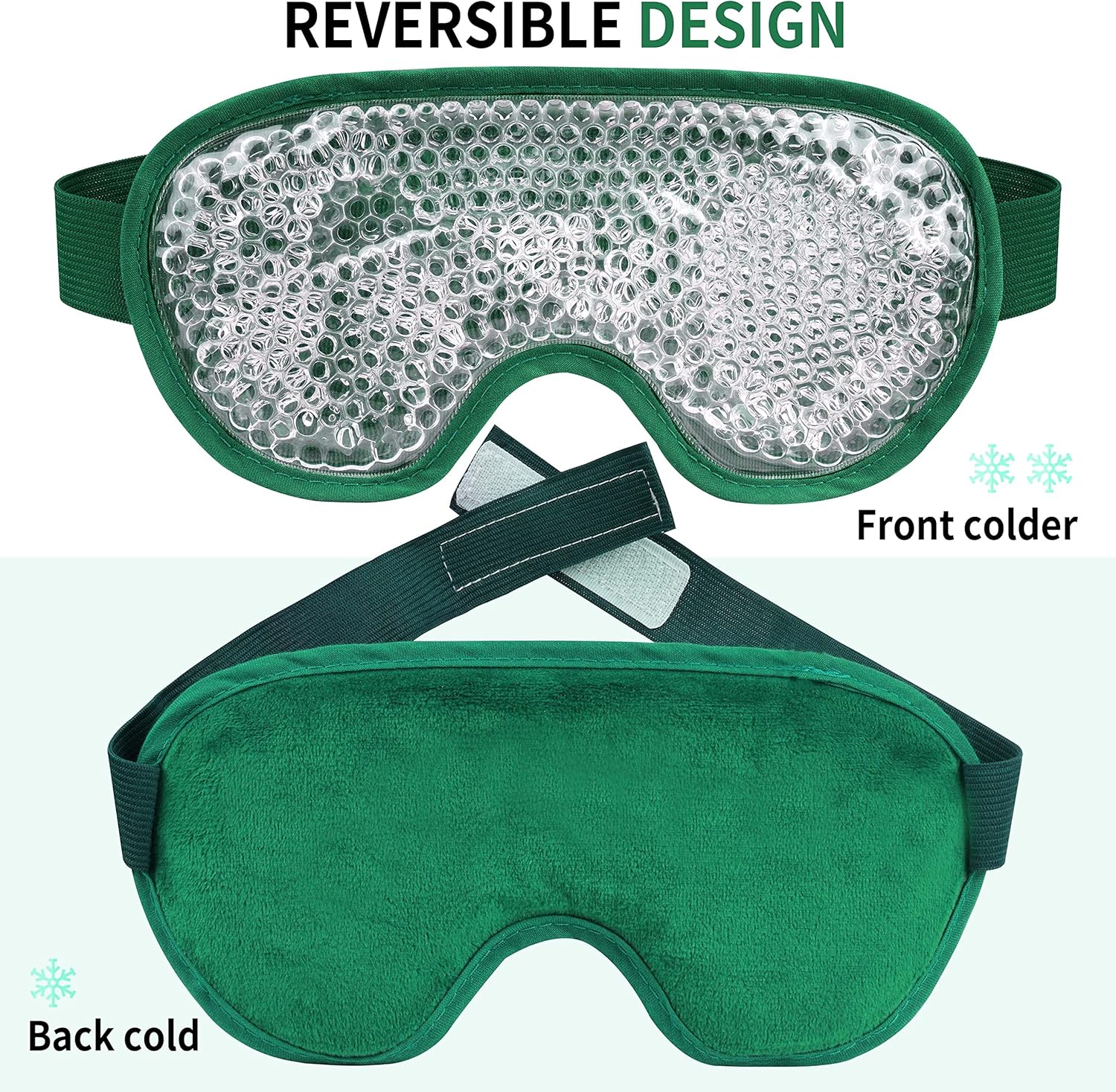 - DOUBLE-SIDED DESIGN:Our cooling gel eye masks have double-sided transparent PVC and plush fabric for the best comfort experience. Both sides can be applied, use the plush side for a cool experience and the transparent side for an even colder experience.