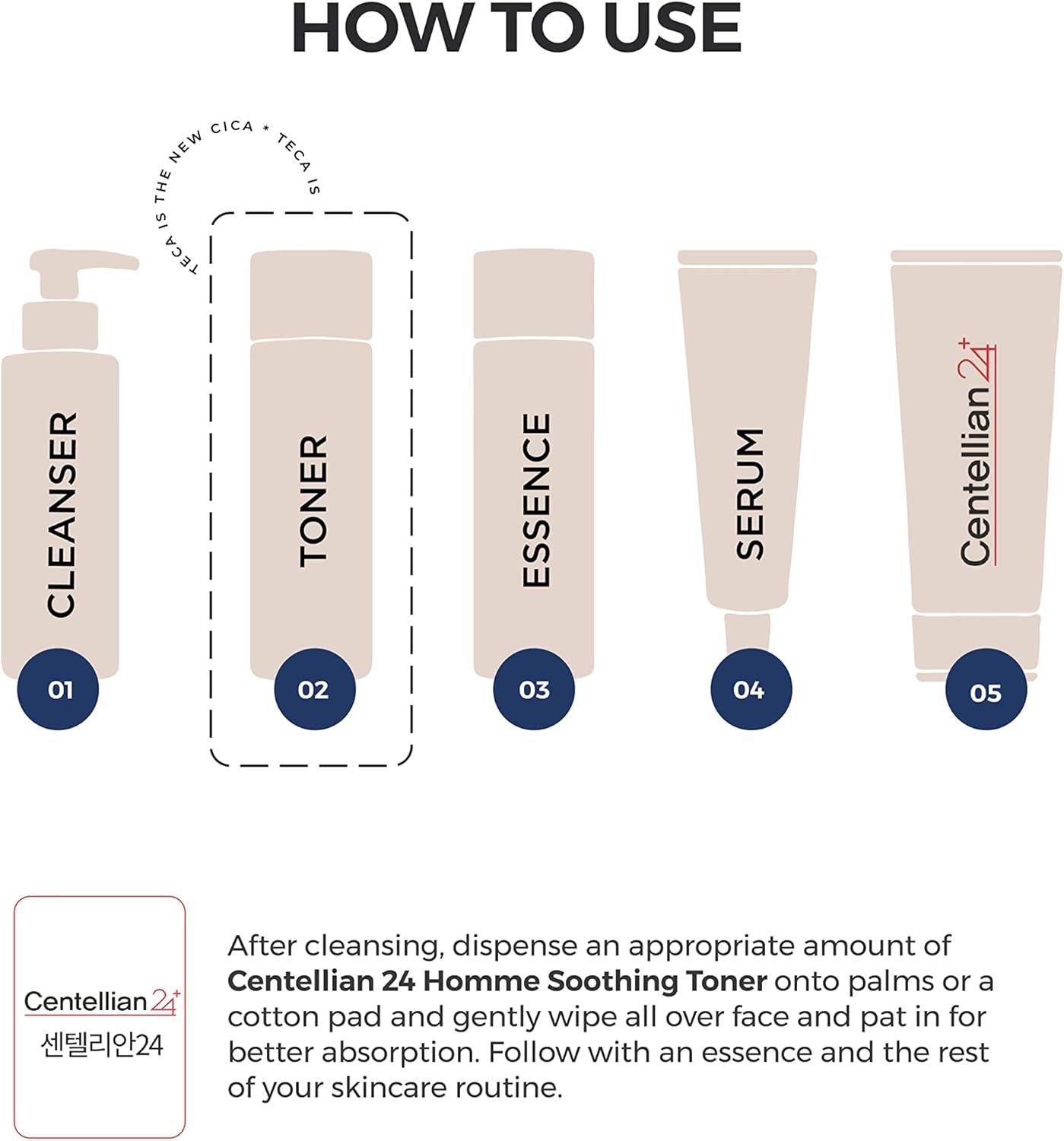 - SOOTHE & TONE - Each bottle of Centellian 24 Homme Soothing Toner is packed with an exclusive ingredient that combines centella asiatica extract, TECA (titrated extract of centella asiatica), blue chamomile, and the supplementary ingredients of peppermint, fish mint, betaine, and vitamin E to help tone and soothe skin.