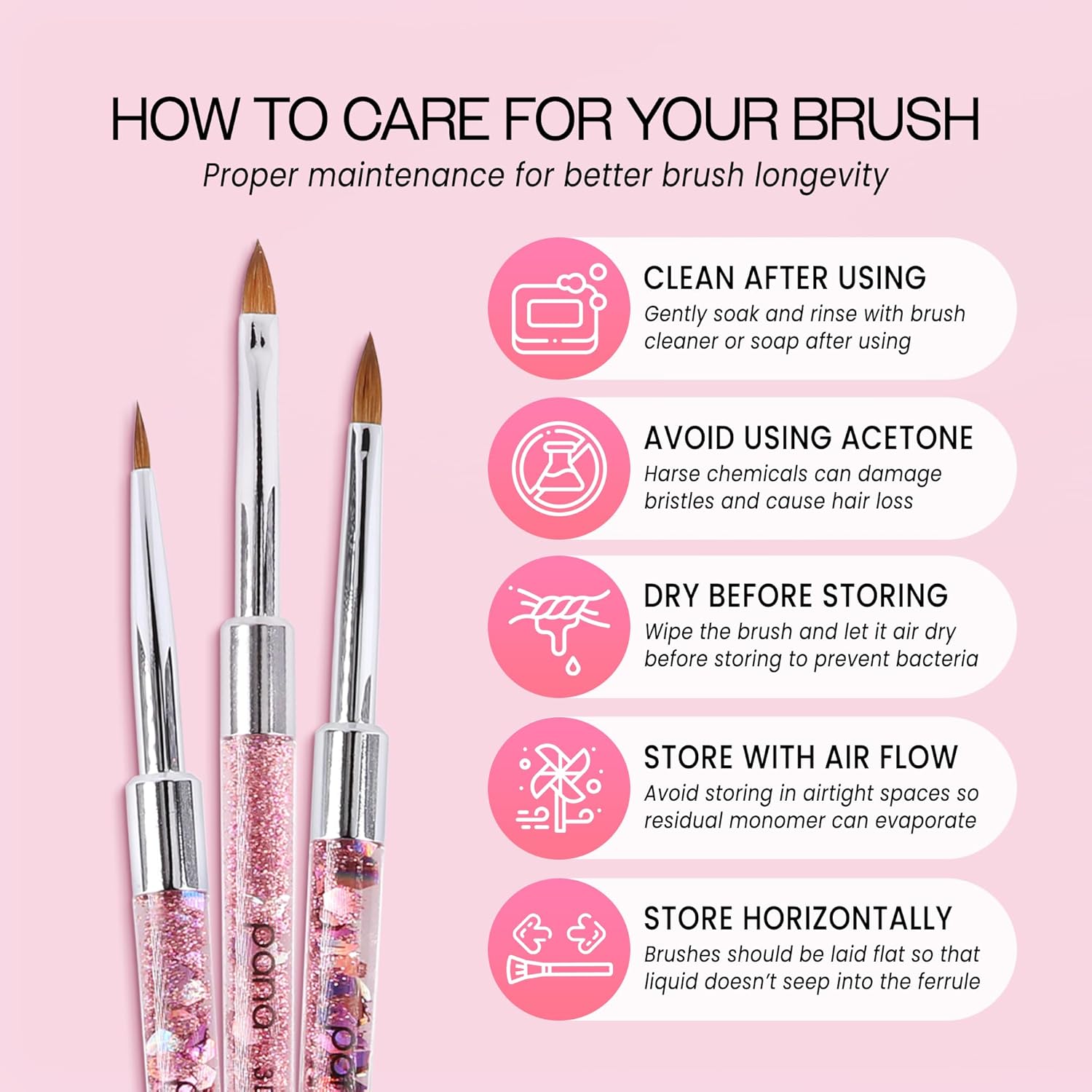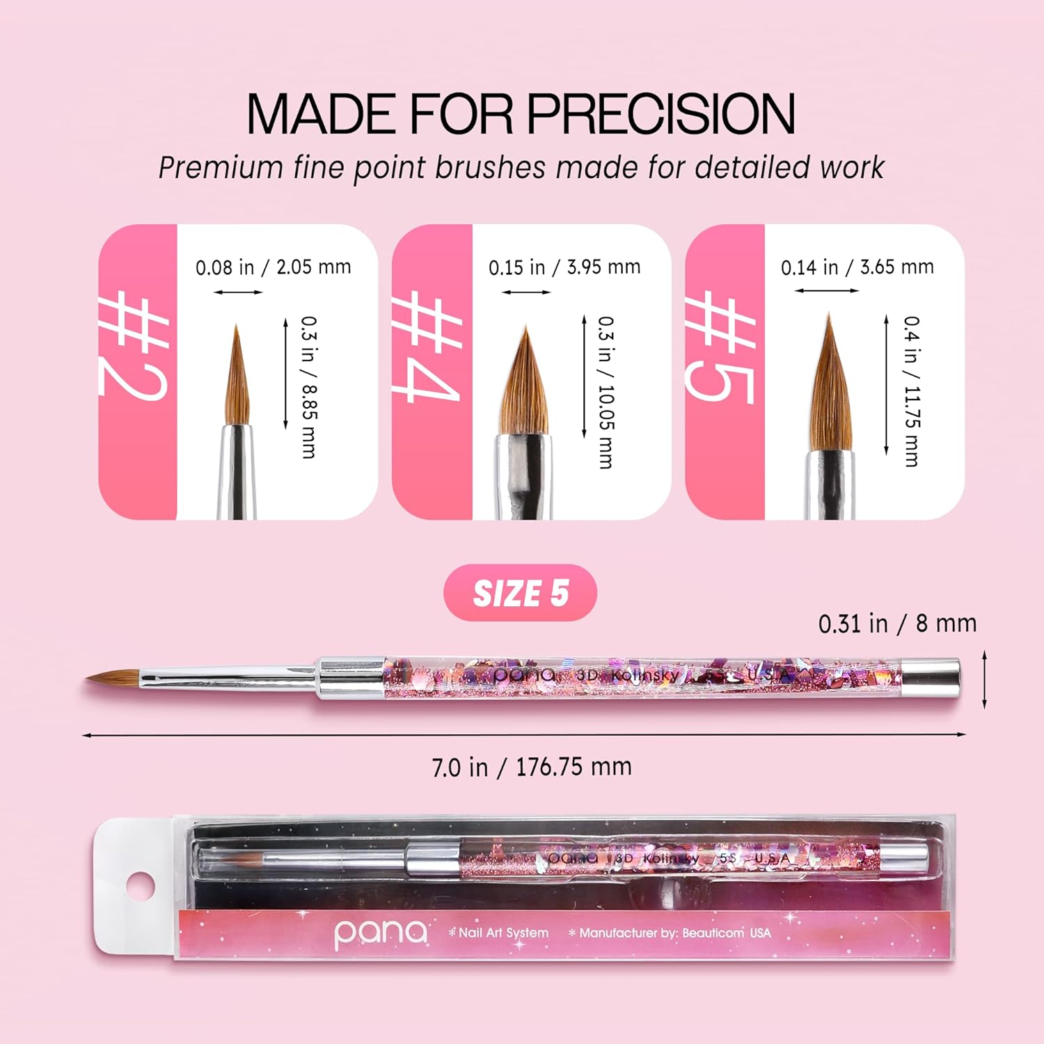 PANA 3D Kolinsky Nail Art Brush - Pink Glitter Handle, Size 5 - Acrylic Nail Art Sculpture Brush for Manicures Pedicure Salon Professional or Beginner