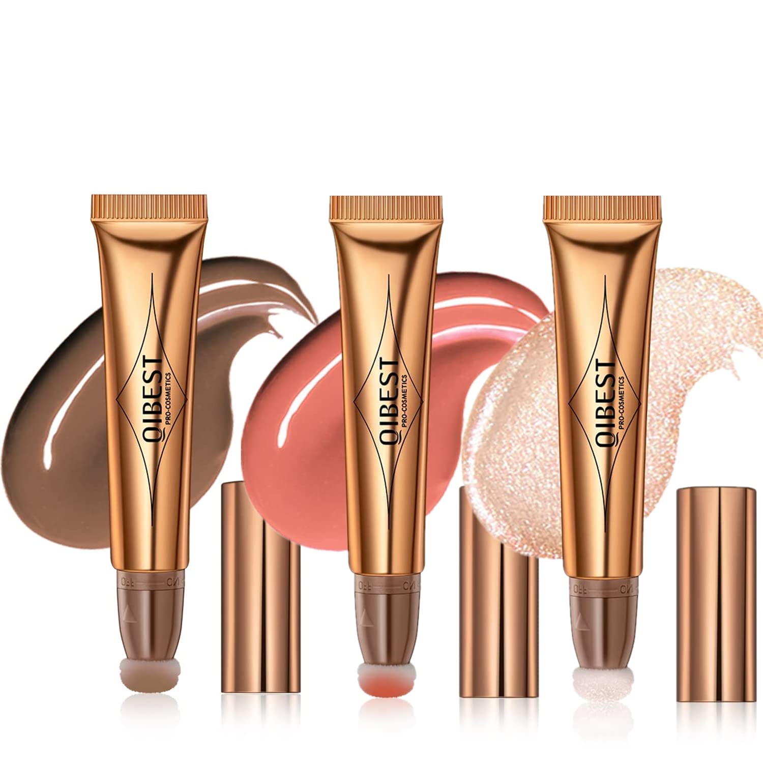 3Pcs Contour Beauty Wand,Liquid Face Concealer Contouring with Cushion Applicator,Liquid Blush Shading Bronzer Stick Natural Matte Finish, Lightweight Blendable Super Silky Cream Contour Stick Makeup