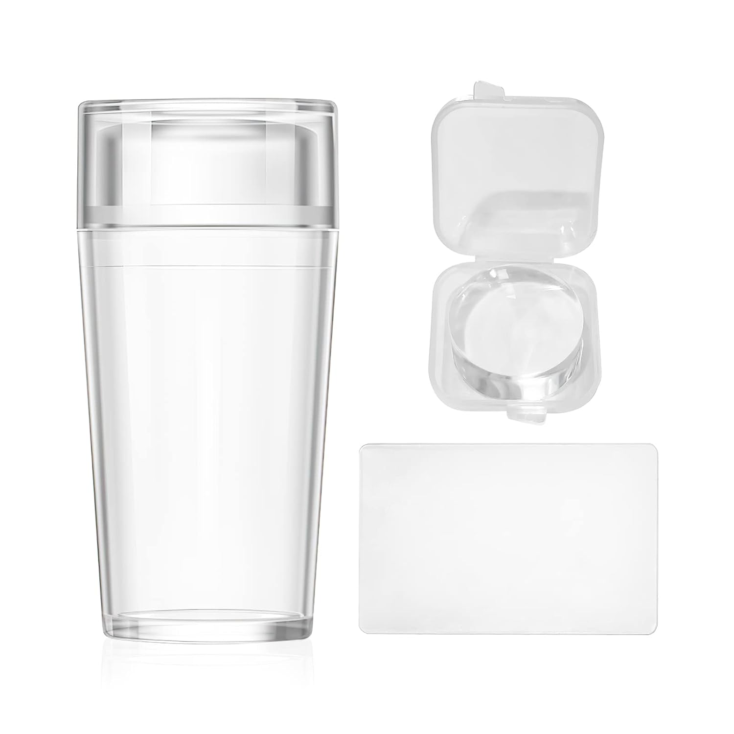 X&D Nail Art Stamper Clear Jelly Nail Art Stamping Transparent Silicone Rubber Nail Polish Stamper with Acrylic Scraper, Spare head Kit for French Tips and Transfer Images