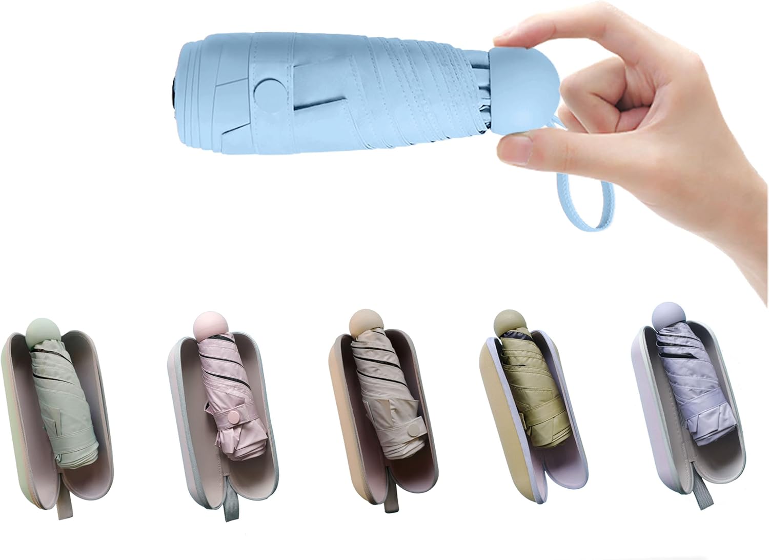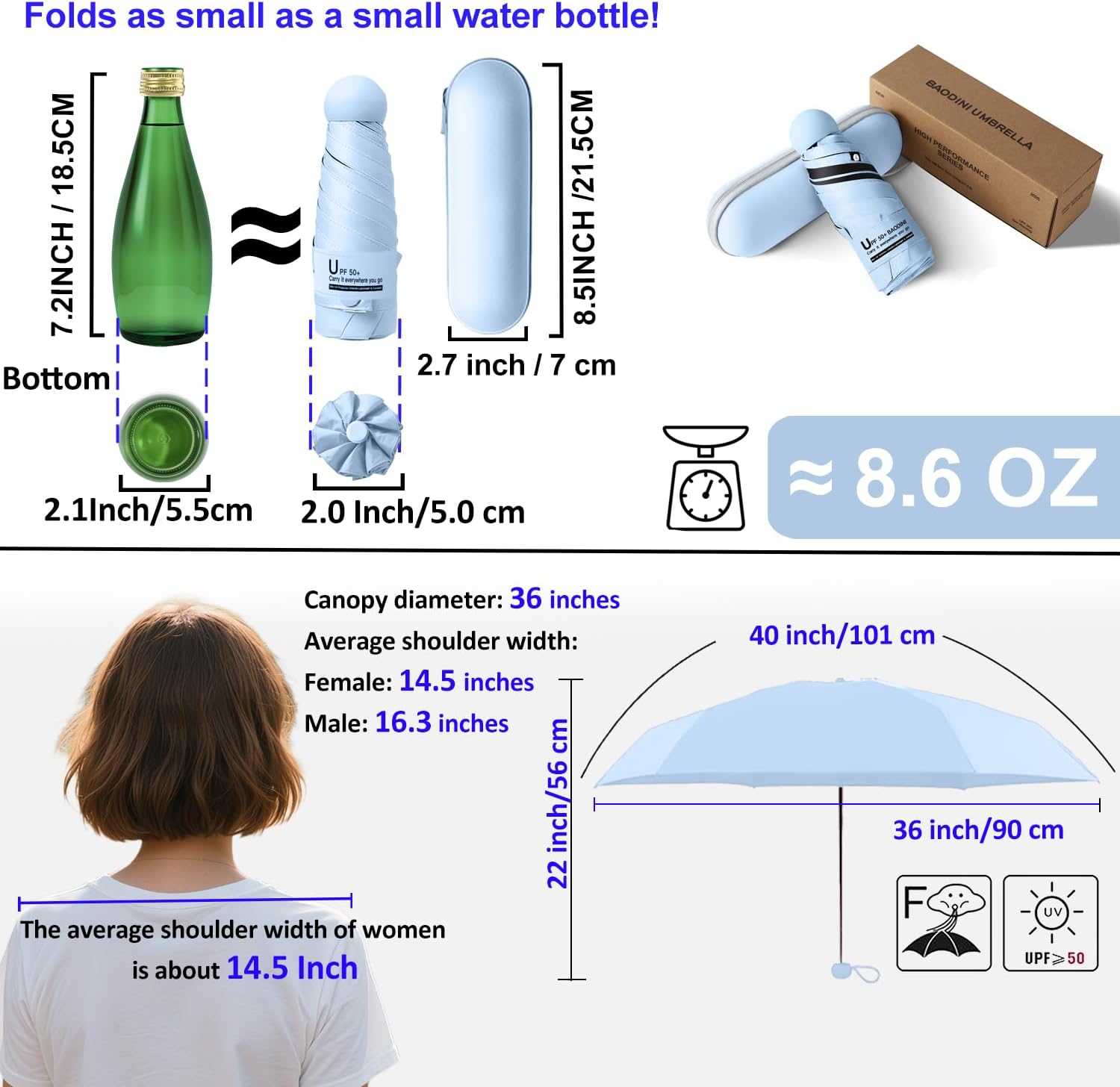 BAODINI Travel Essentials Mini Umbrella for Purse With Case Small Compact UV Sun Protection Lightweight Tiny Pocket Manual Open Close Umbrella for Women Kids and Men Fit Purse Backpack