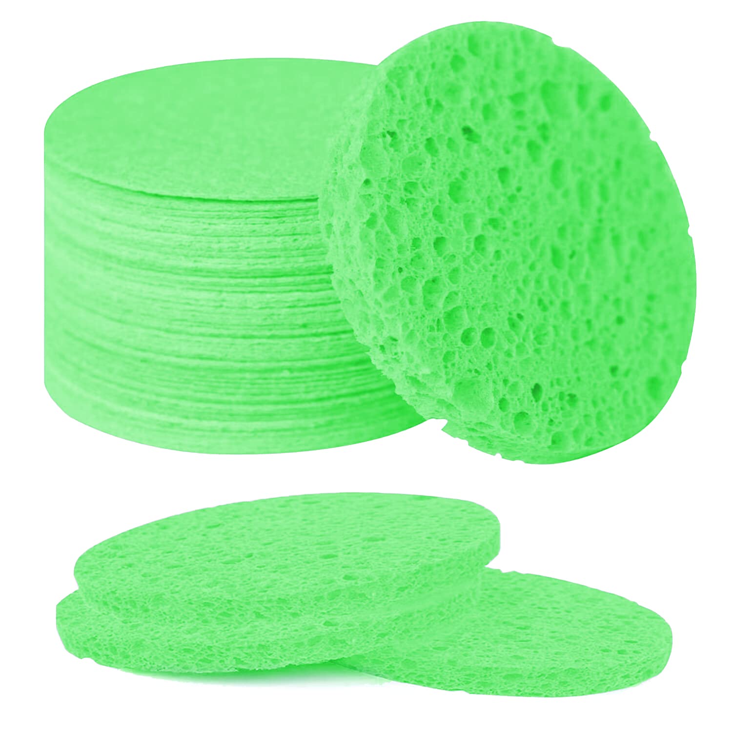 50-Count Facial Sponges Compressed Natural Cellulose Sponge Round Shape Face Sponge for Face Cleansing Exfoliating and Makeup Removal, Green