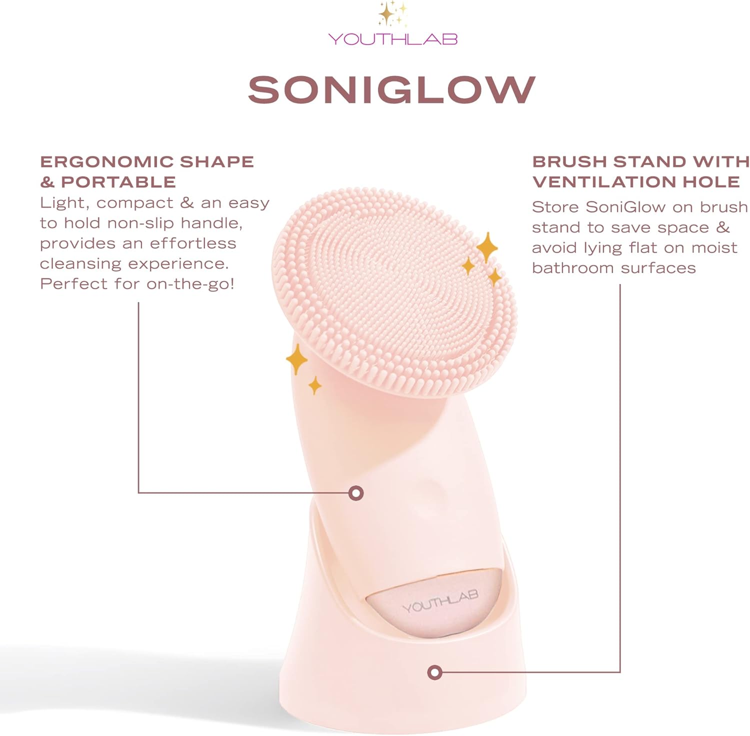 SoniGlow Silicone Facial Cleansing Brush – Electric Vibrating Skincare Scrubber Tool for Deep Pore Cleansing, Gentle Massage, Makeup Removal, Waterproof and Rechargeable (Pink)