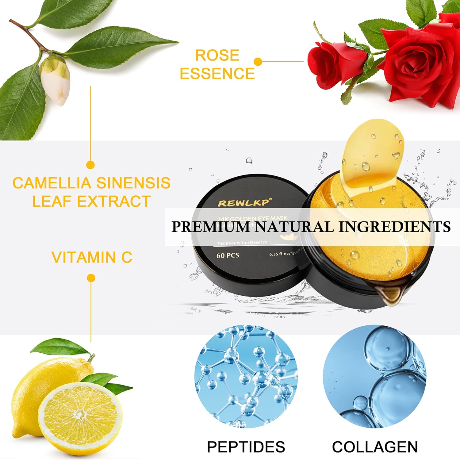 - Natural Ingredients: Contains 24k gold eye patches with collagen to reduce dark circles and puffiness around the eyes