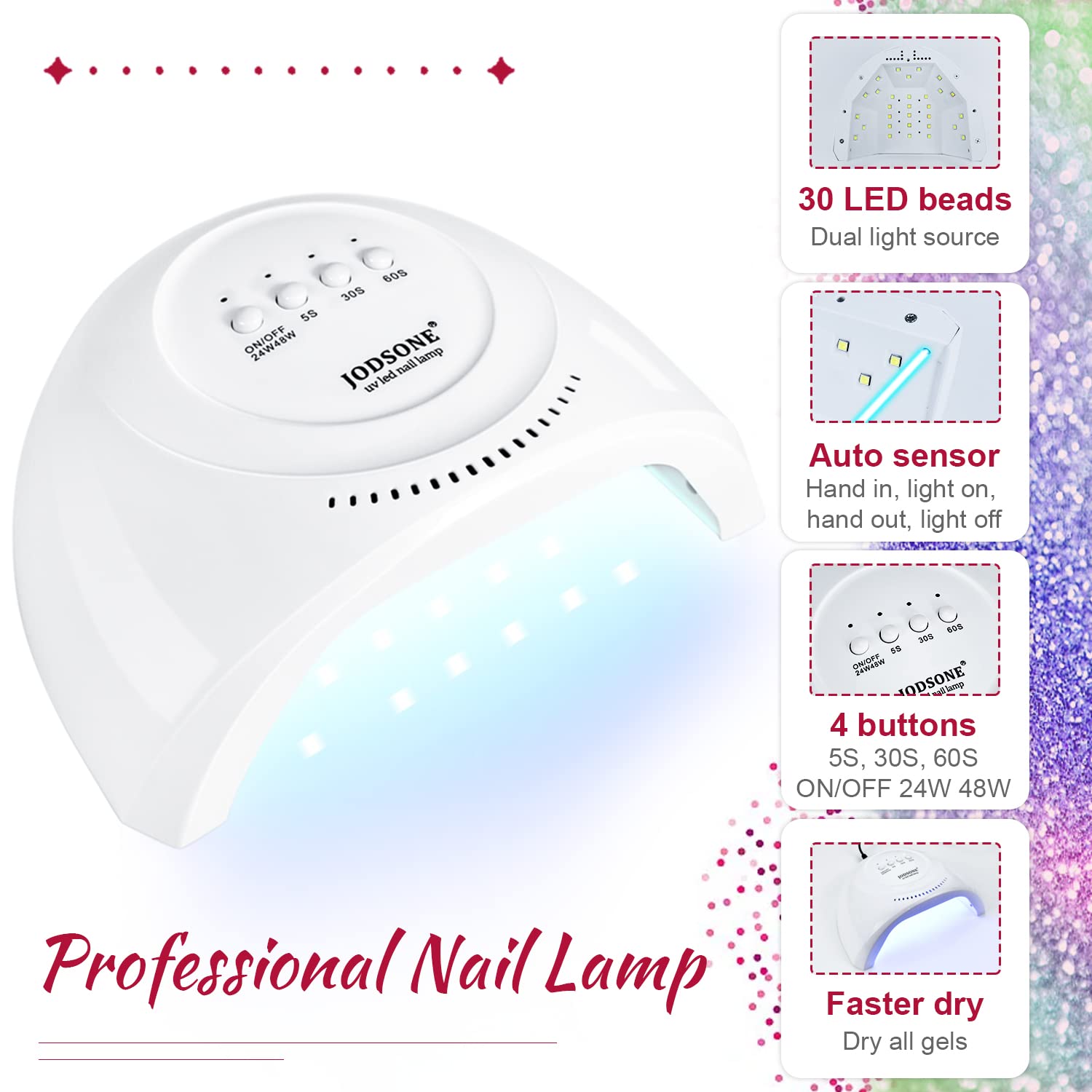 JODSONE 60 PCS Gel Nail Polish Starter Kit With U V Light 55 Kinds Of Color Glitter Gel Polish No Wipe Base And Glossy Matte Top Coat Easy To Apply