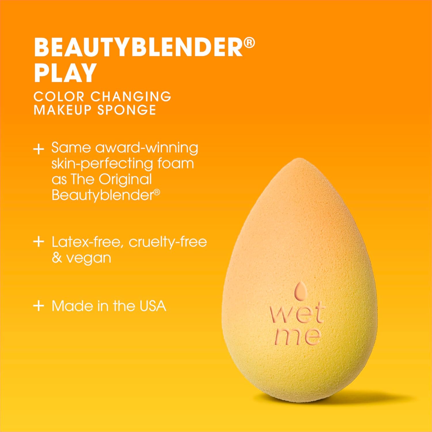 - FUN COLOR CHANGE: Soaking this Beautyblender in warm water preps it for makeup and transforms it from a mellow tangerine to a sunny yellow. Wetting the sponge activates the foam for a flawless skin-like finish.
