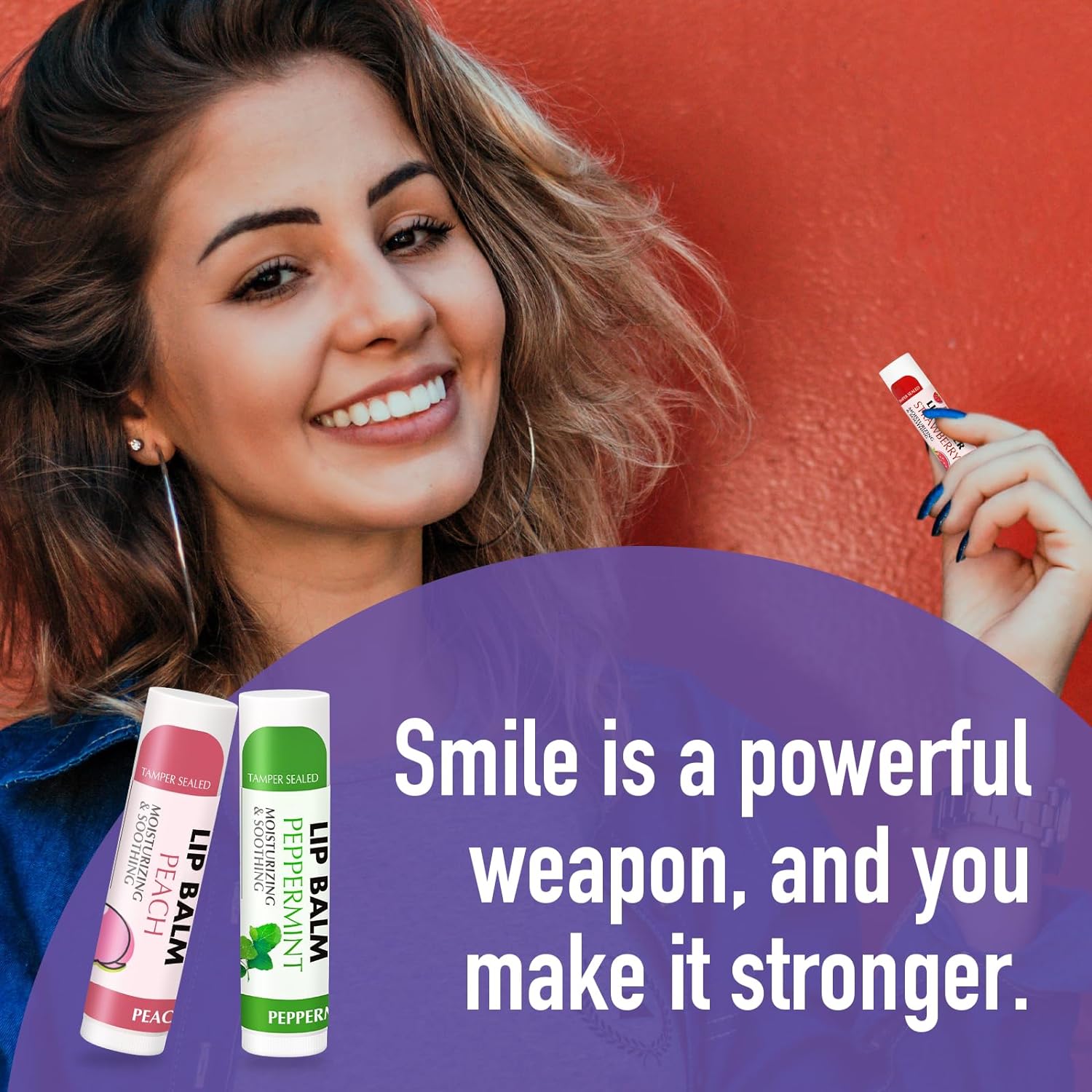 - Flavored Lip Balm: 12 Flavors - Strawberry, Watermelon, Mango, Coconut,Pineapple, Rose, Vanilla, Cherry, Mint, Grape, Peach, Orange
