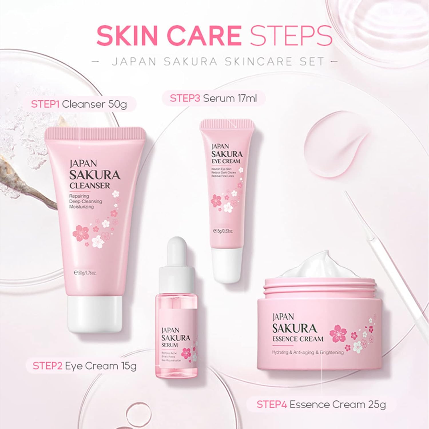 Skin Care Set - Sakura Skin Care Sets & Kits - Women Gift Sets with Cleanser,Serum,Eye Cream,essence Cream - Beauty Products For Women - Skin Care Routine Travel Kit (SetB)