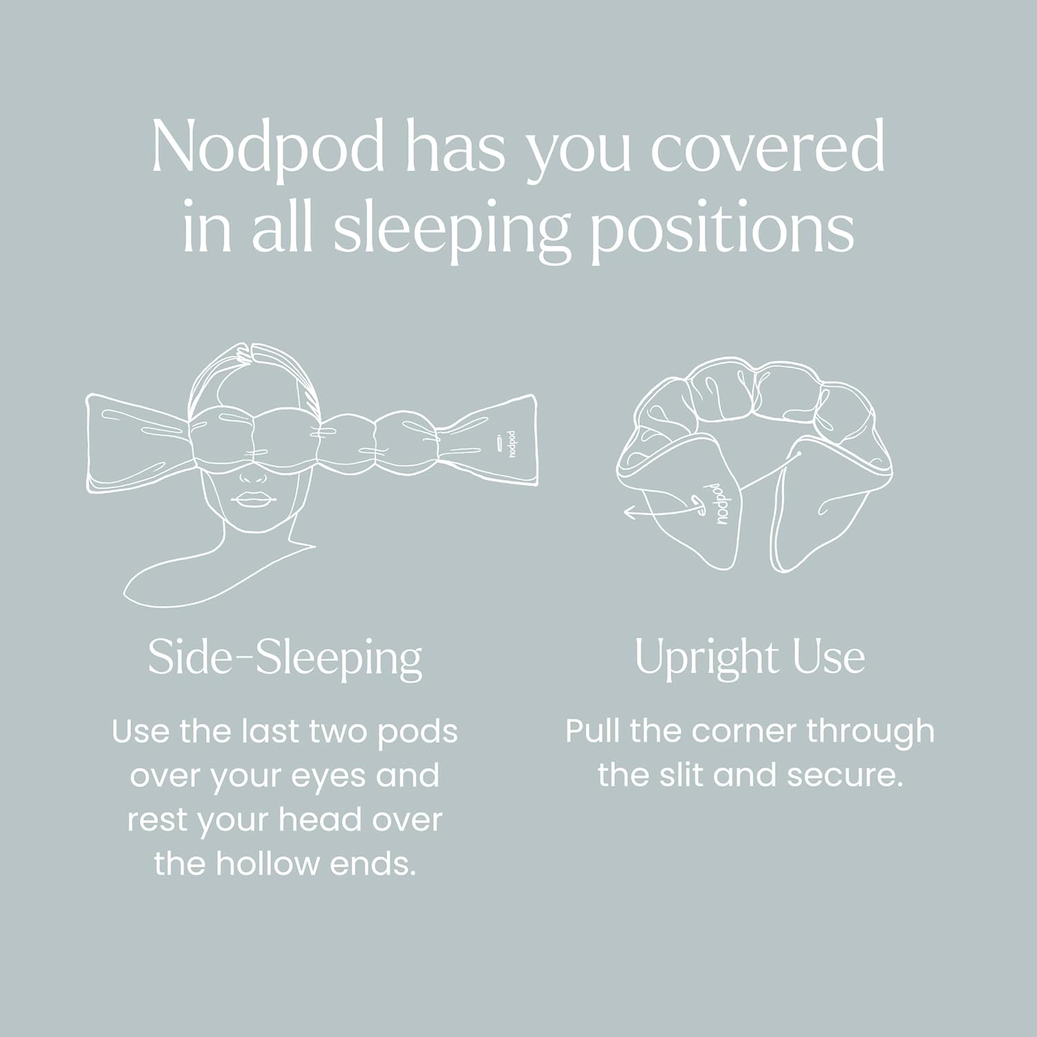 - USE IT YOUR WAY: Designed for side sleeping but ideal for any position, whether at home, on a plane, or during yoga or meditation. Nodpod Silk is freezer-friendly, soft, and flexible, making it perfect for comfortable, real-world rest.