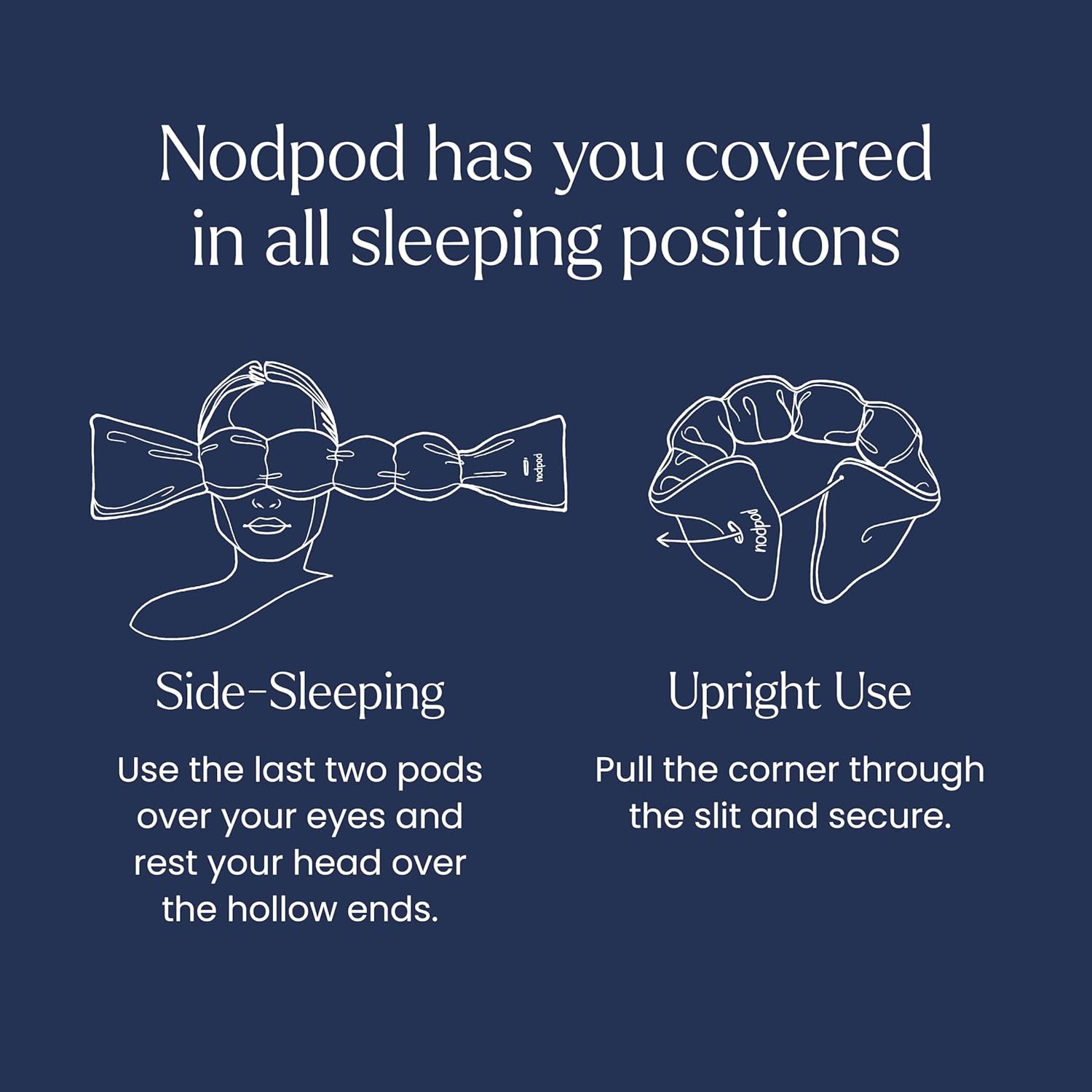 - USE IT YOUR WAY: Designed for side sleeping but ideal for any position, whether at home, on a plane, or during yoga or meditation. Nodpod Silk is freezer-friendly, soft, and flexible, making it perfect for comfortable, real-world rest.